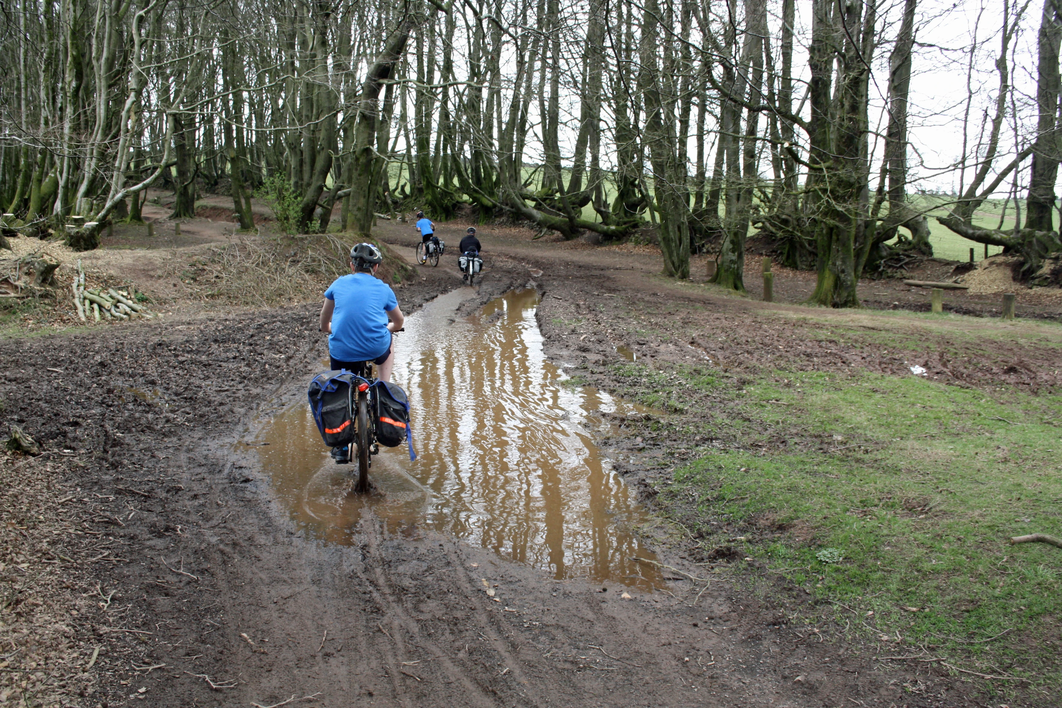 Watery challenges on the Quantocks ridge track near Great Hill.