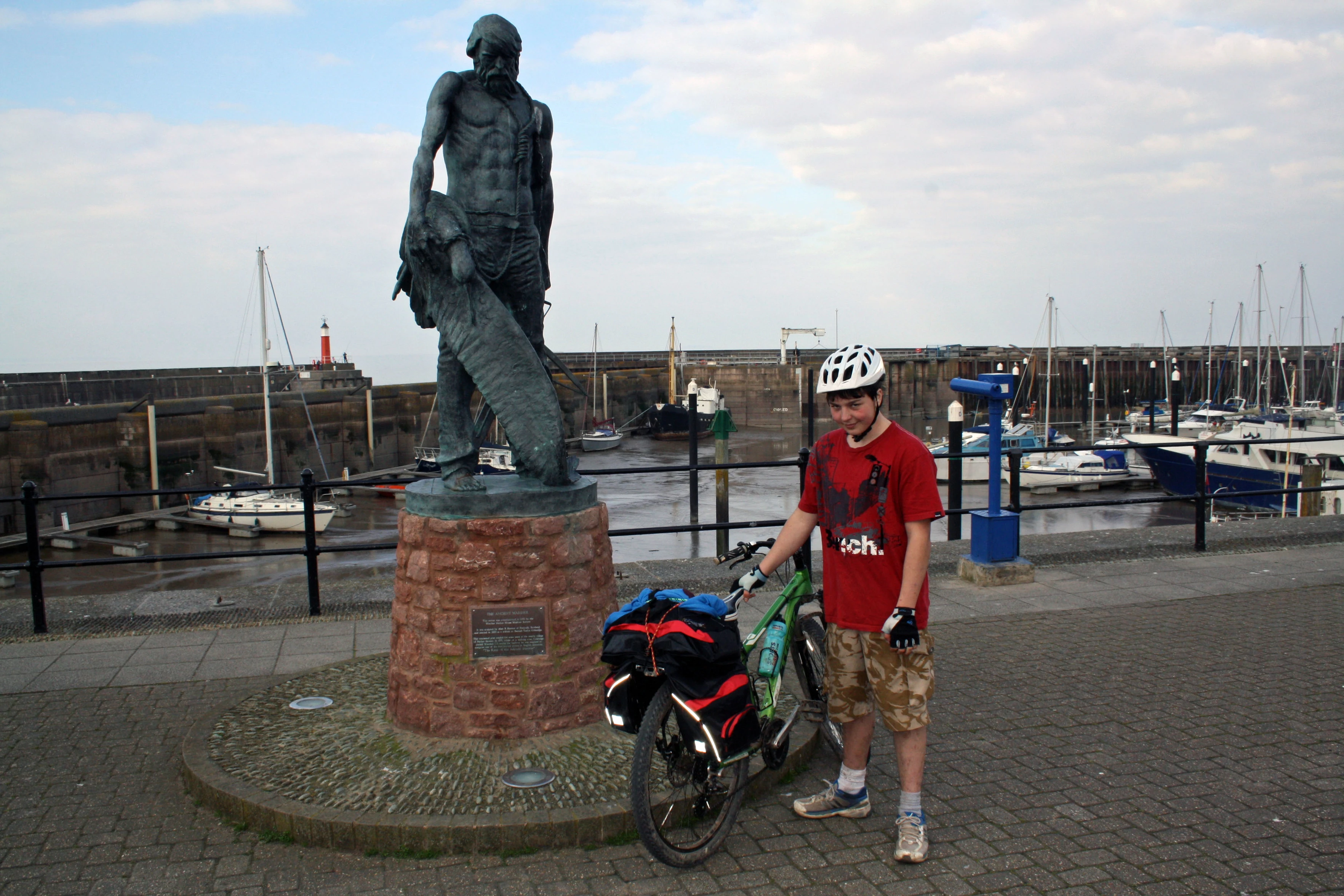 Lawrence by the Statue of the Ancient Mariner, Watchet Harbour.