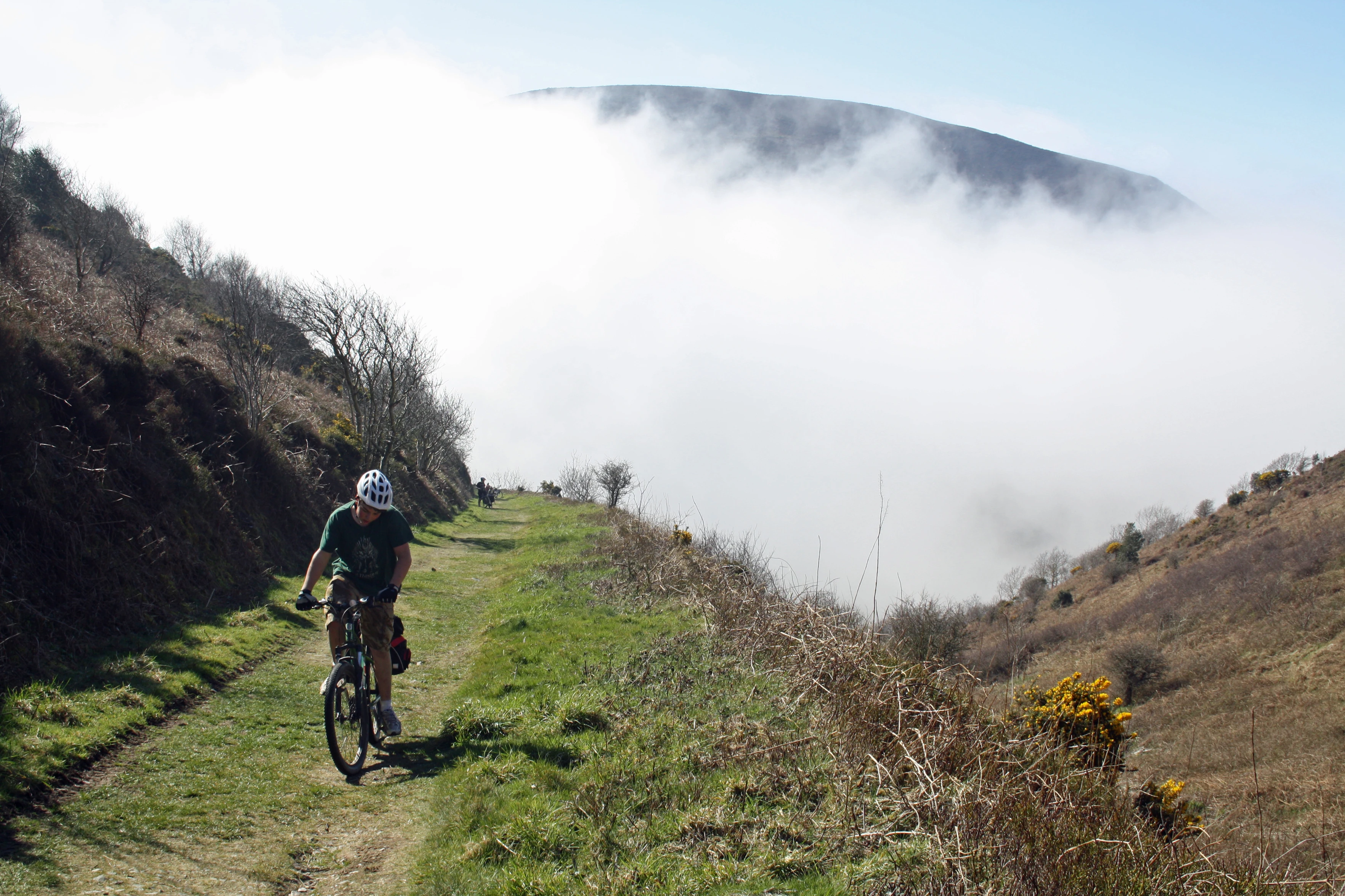 The coast path from the Hunters Inn finally climbs above the fog