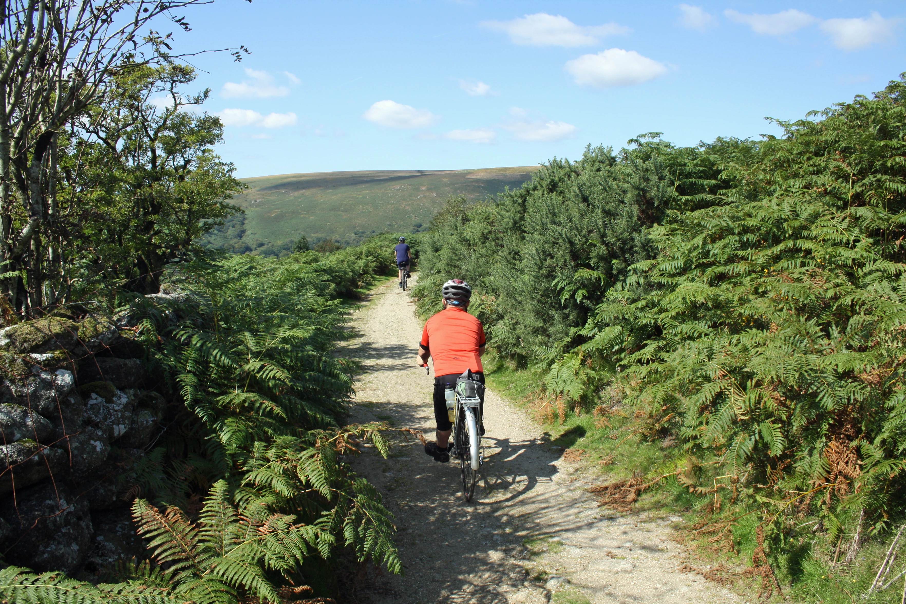 Dillan and John on the track from Bonehill to Natsworthy, 8.8 miles in.