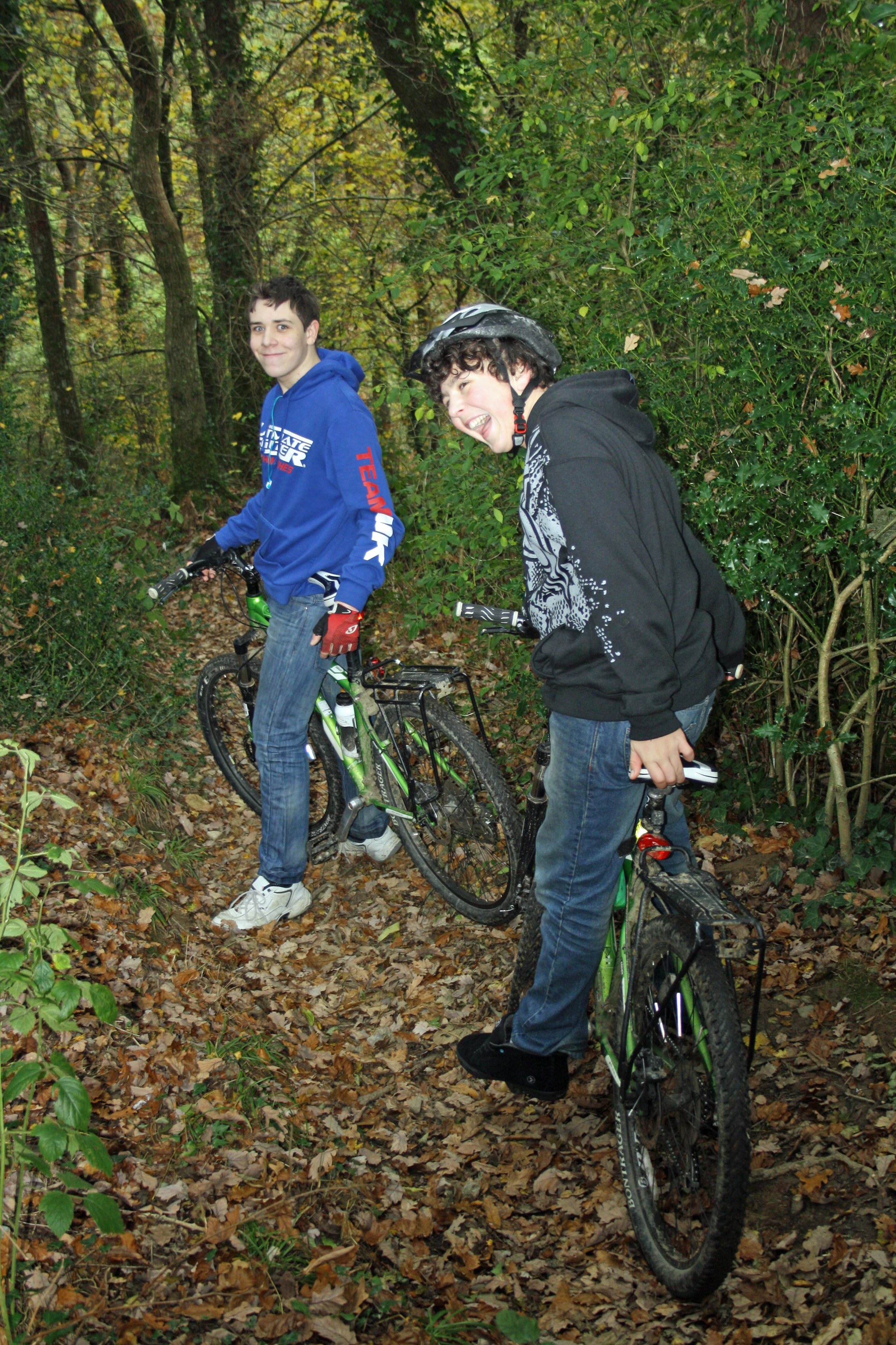 Callum and Lawrence in Hillah Wood, on the way home.
