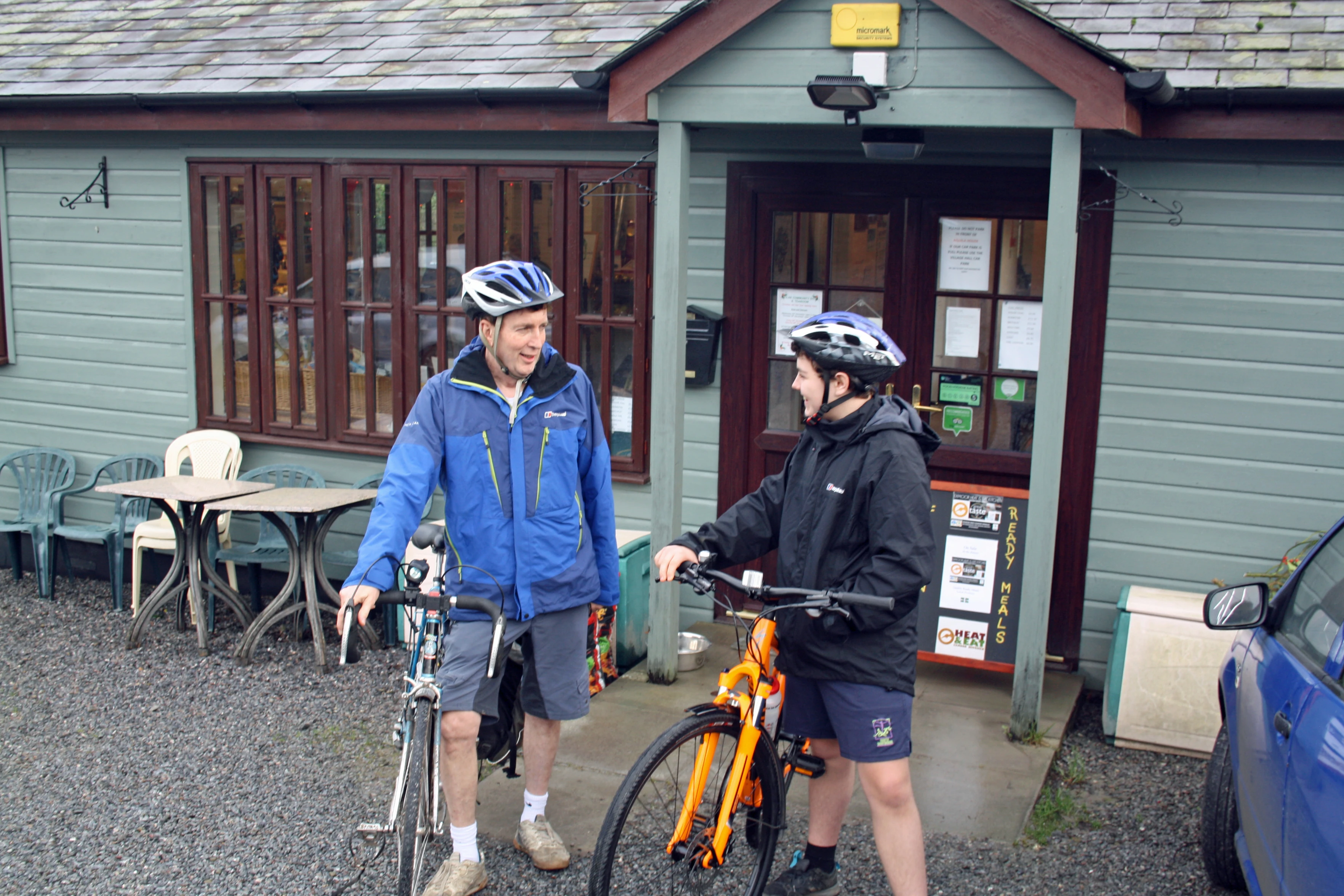 Michael and Dillan at the Holne café, enjoying the Christmas welcome.
