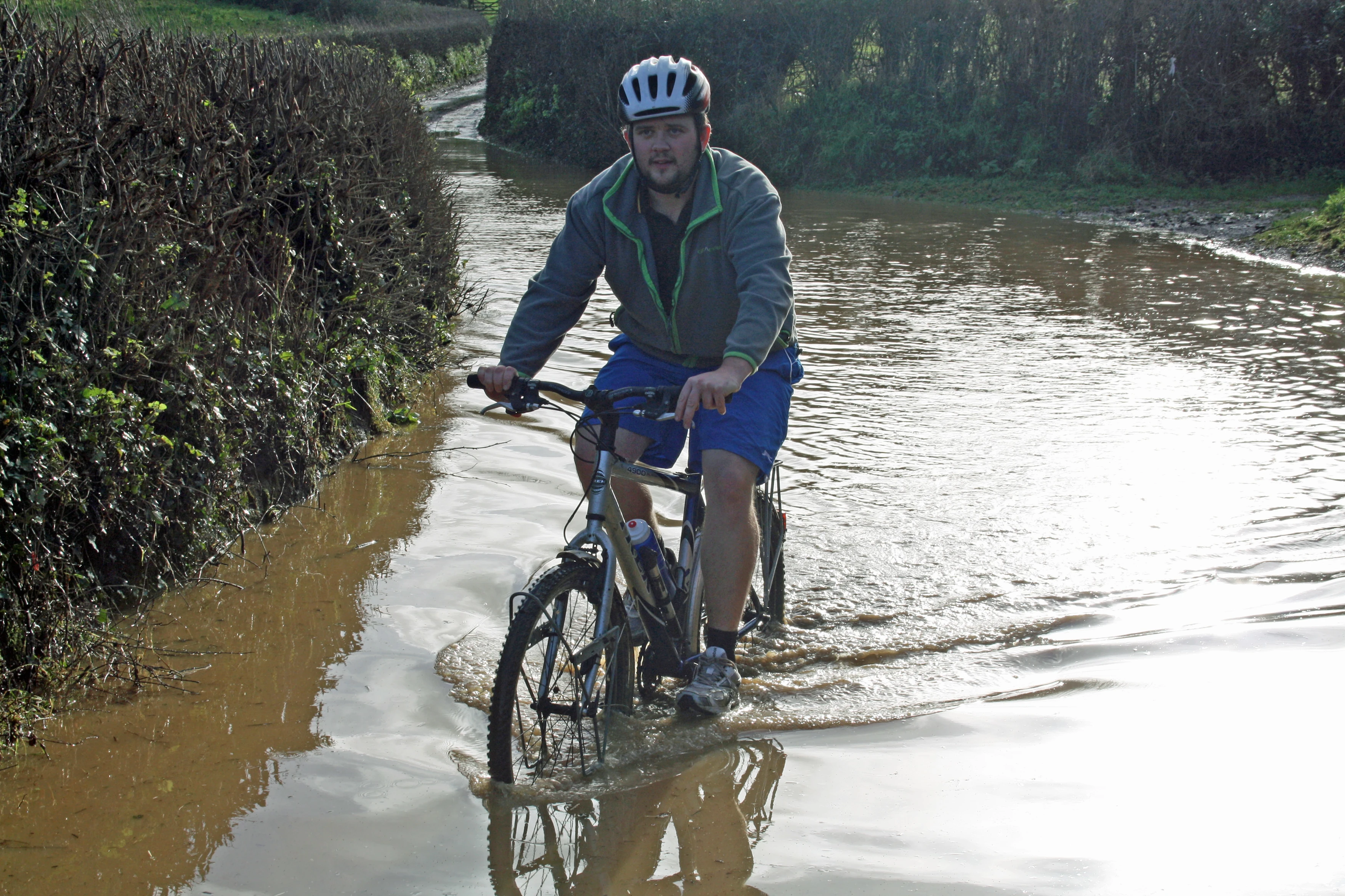 Gavin's test run through the Landscove lake ends with soaked feet. Yes, it's deep.
