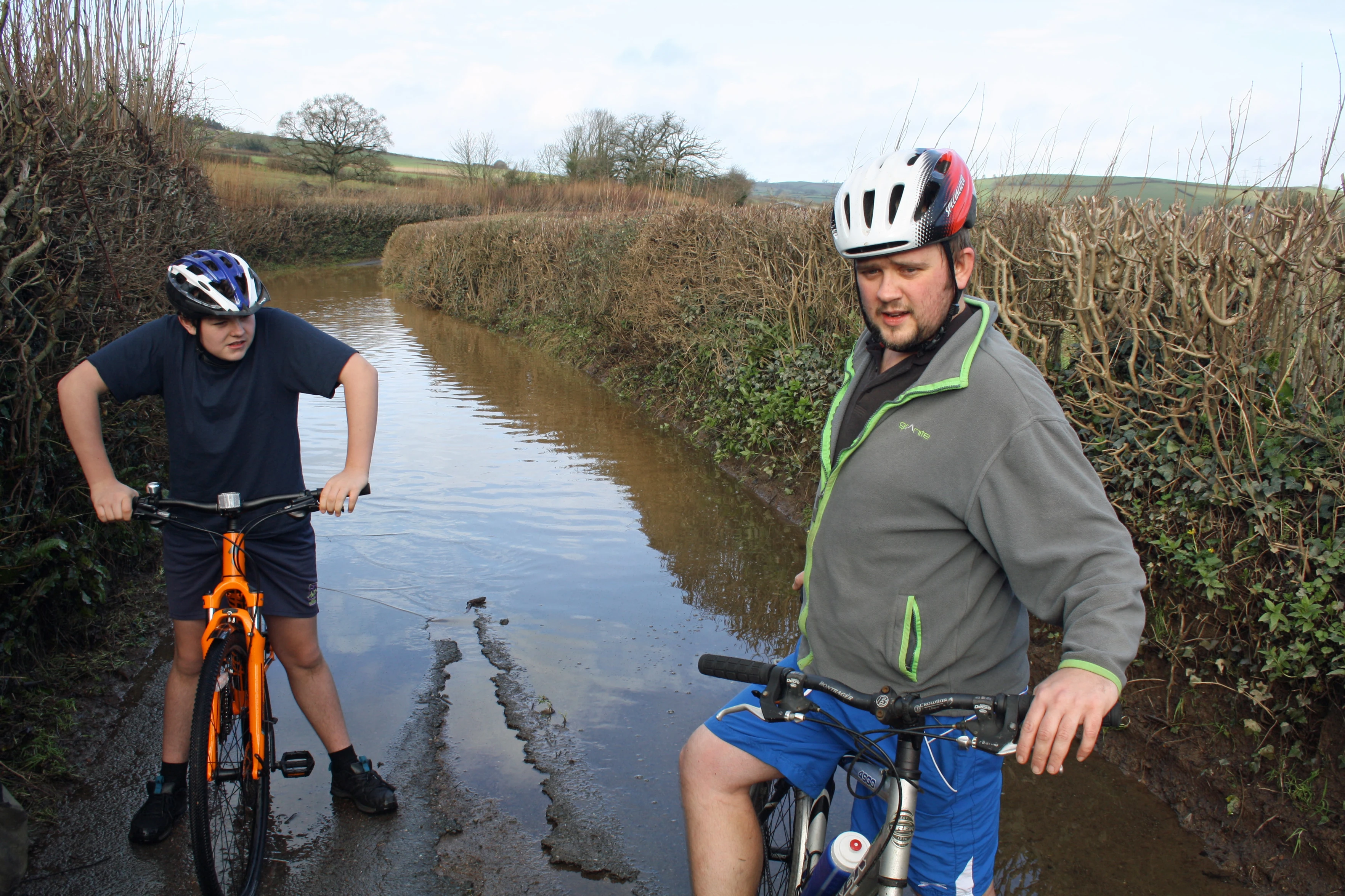All through the lake near Landscove; Dillan and Gavin now sporting wet feet.