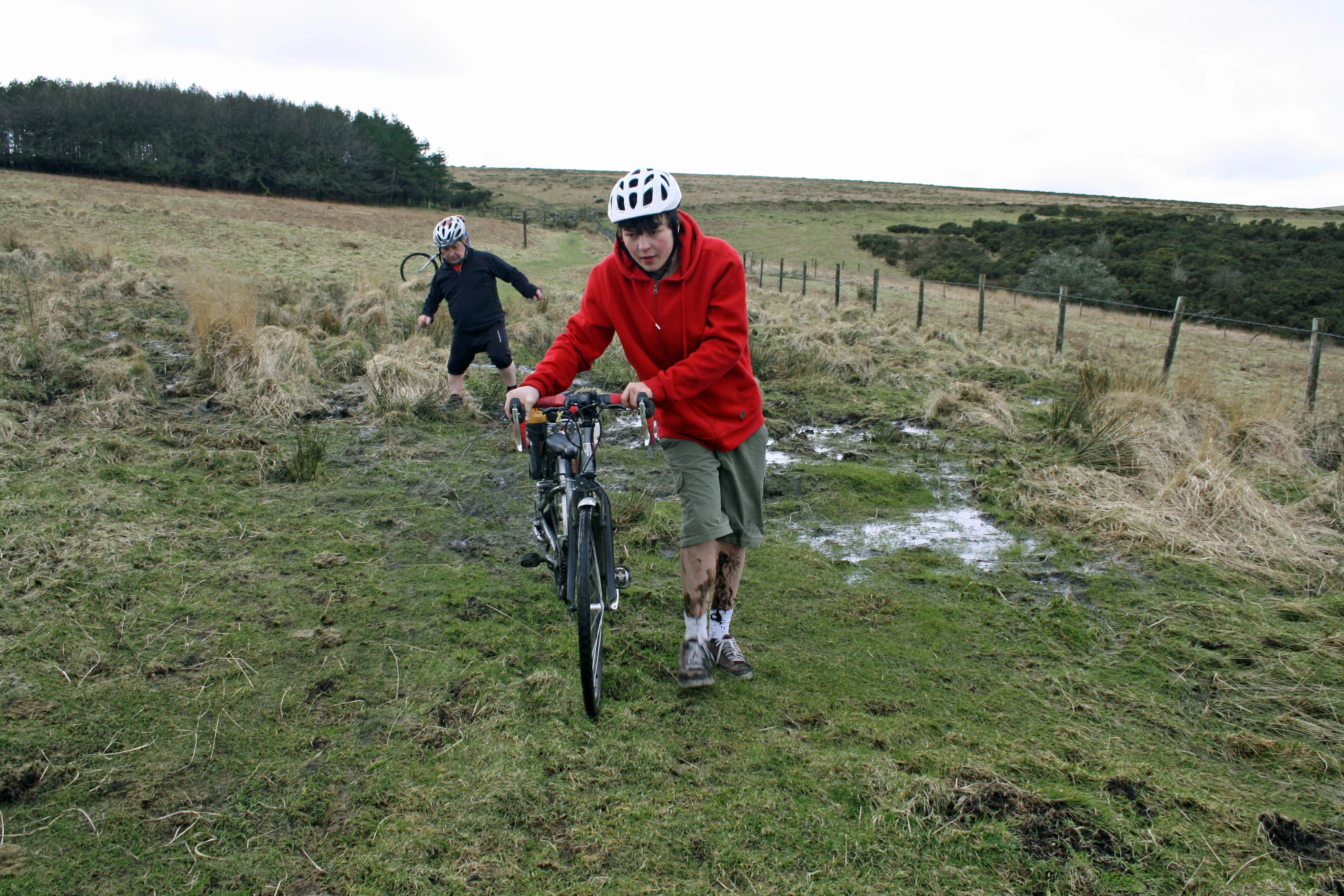 John negotiating the bog near Water Oak Corner on Abbots Way.