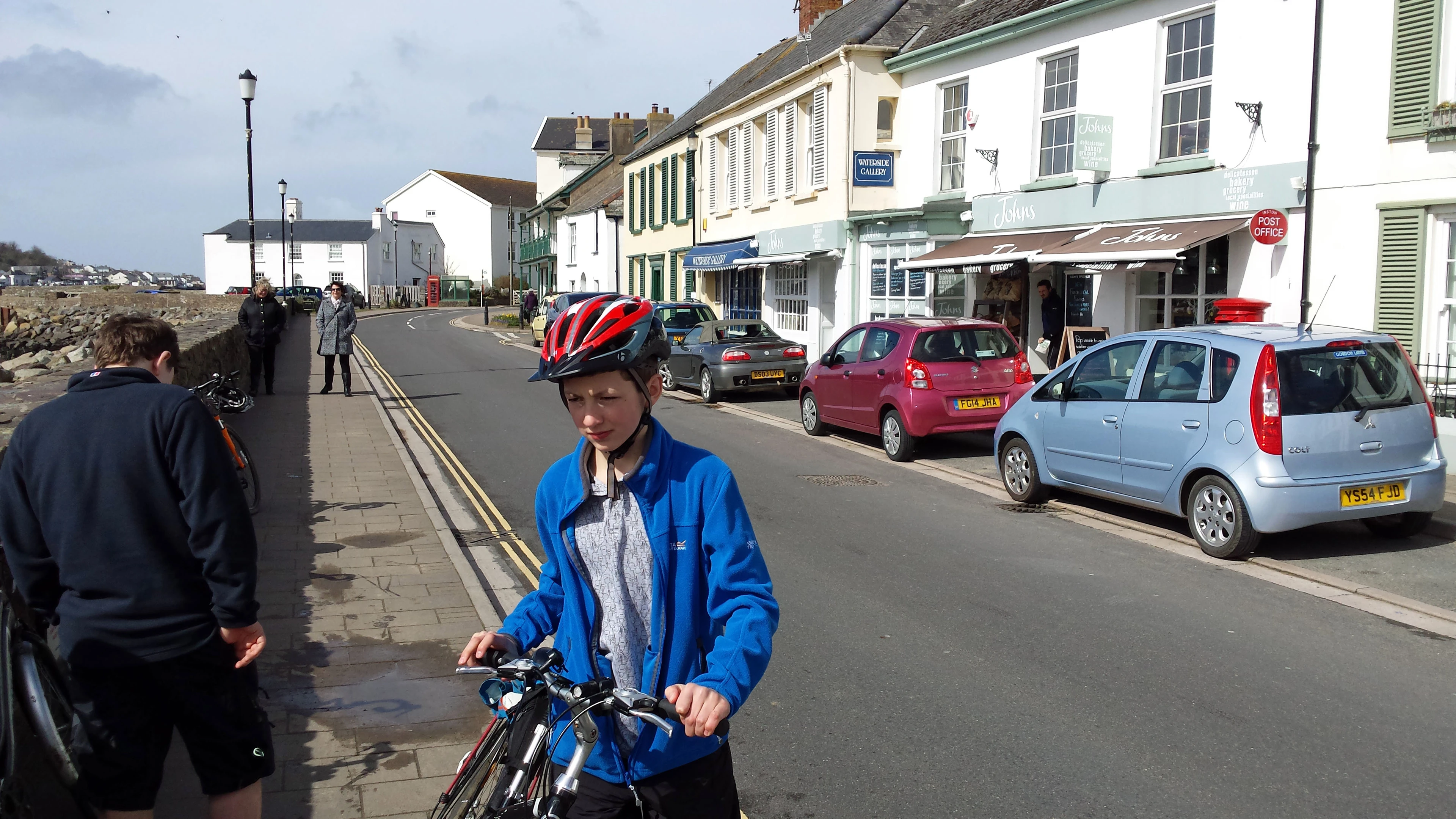 Dillan and George at Johns Bakery, Instow, 19.1 miles in.