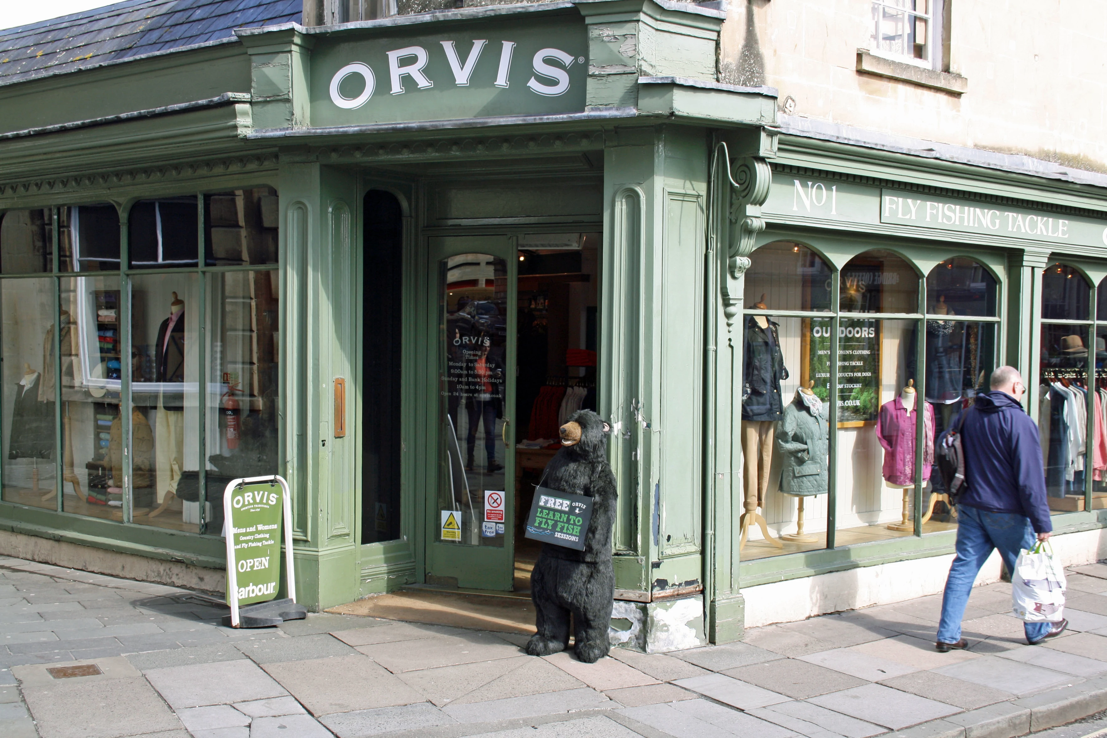 A bear lends a paw outside a shop near Pulteney Bridge, Bath