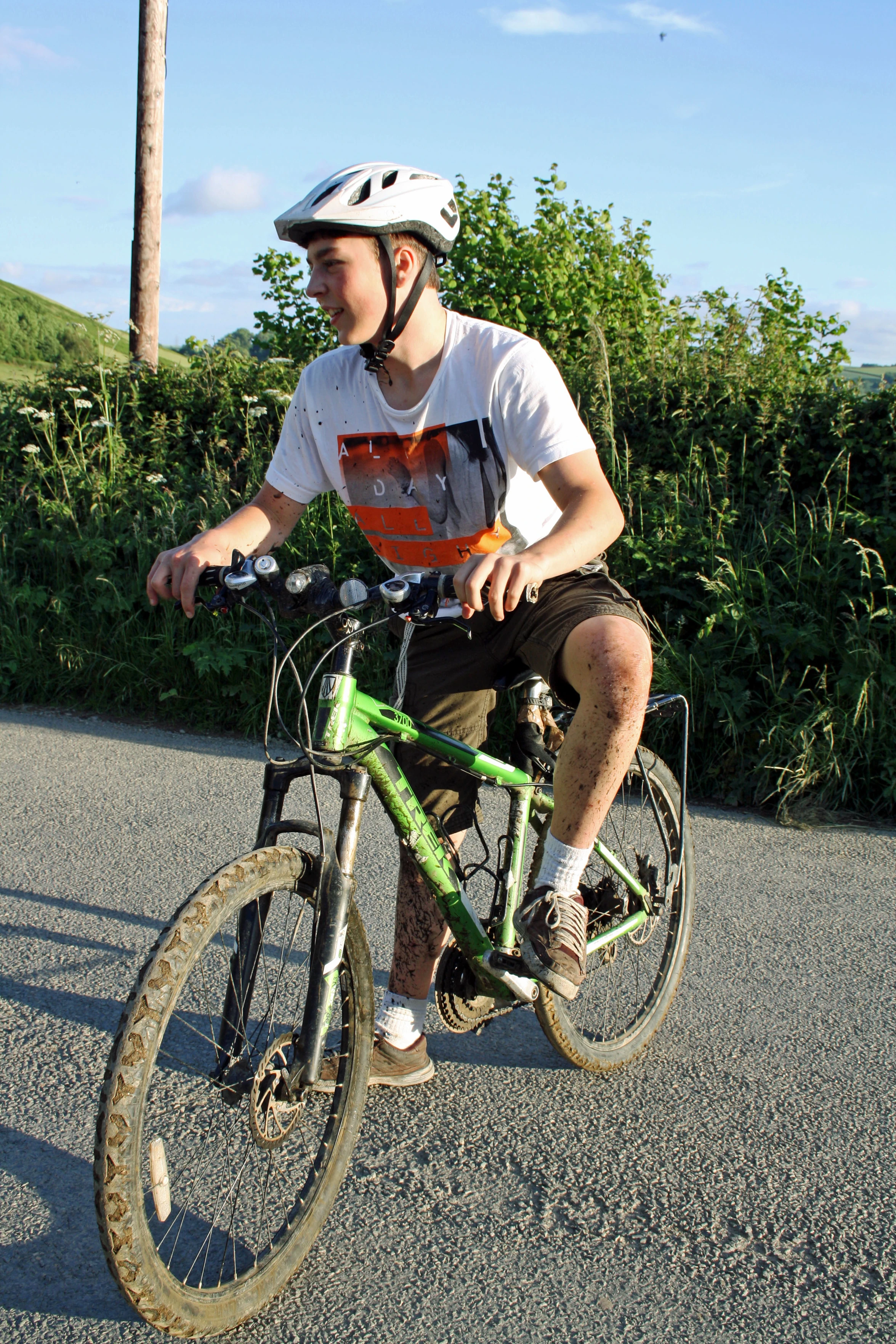 Lawrence suffers the fallout from an exploding front fork near Riverford Organic.