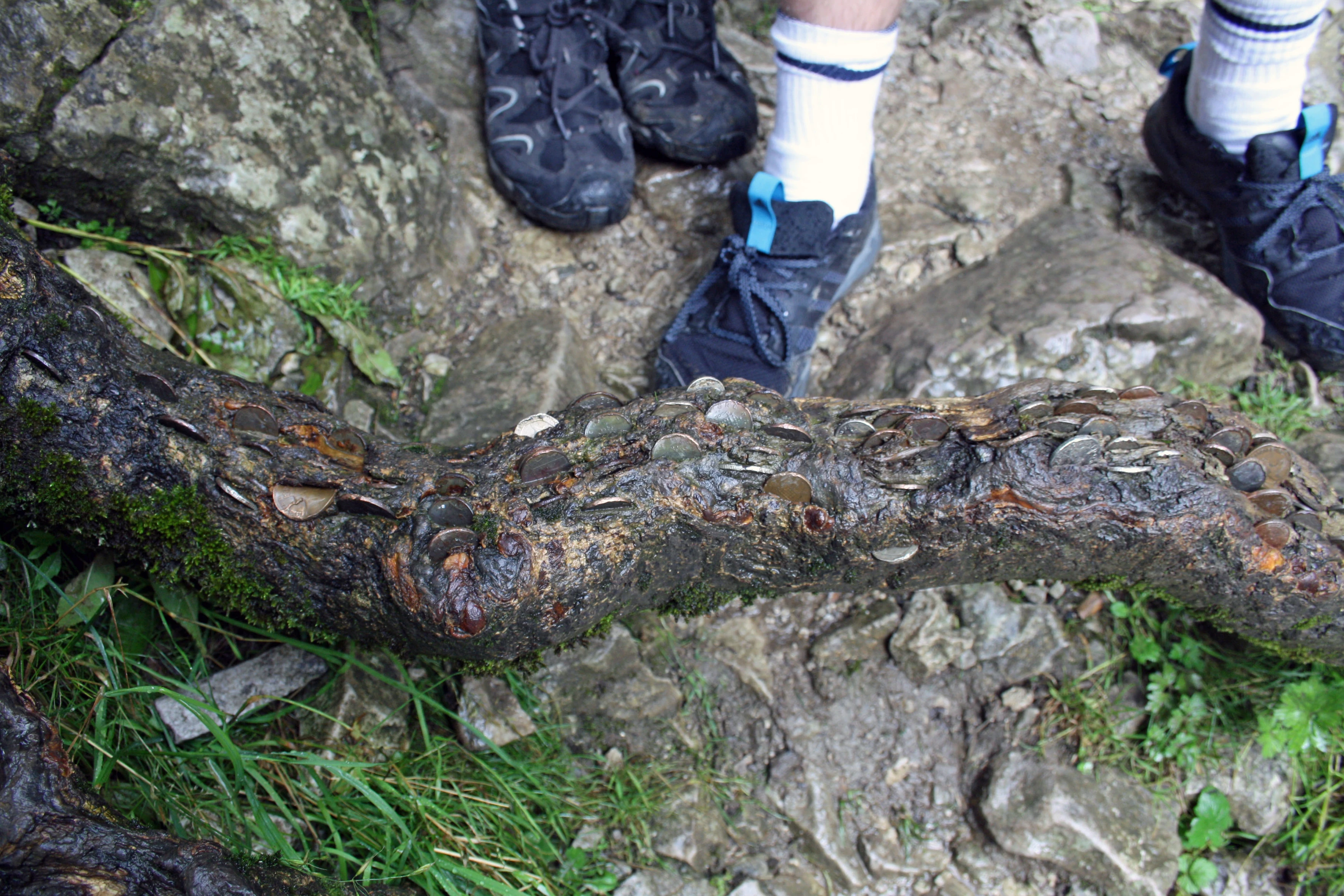 Coin-studded wishing trees have reached Malham Cove.