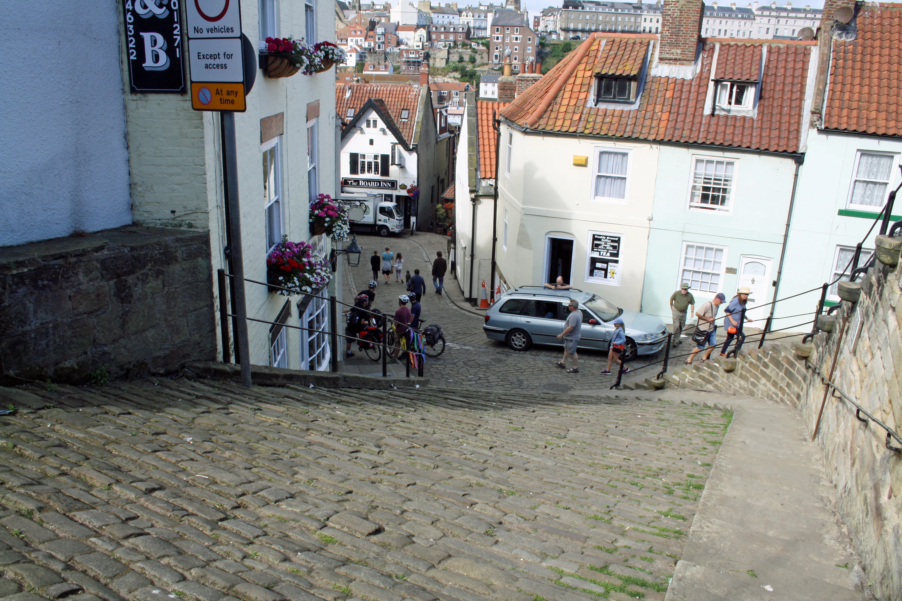 Steep steps and cobbles from the hostel down to Henrietta Street, Whitby