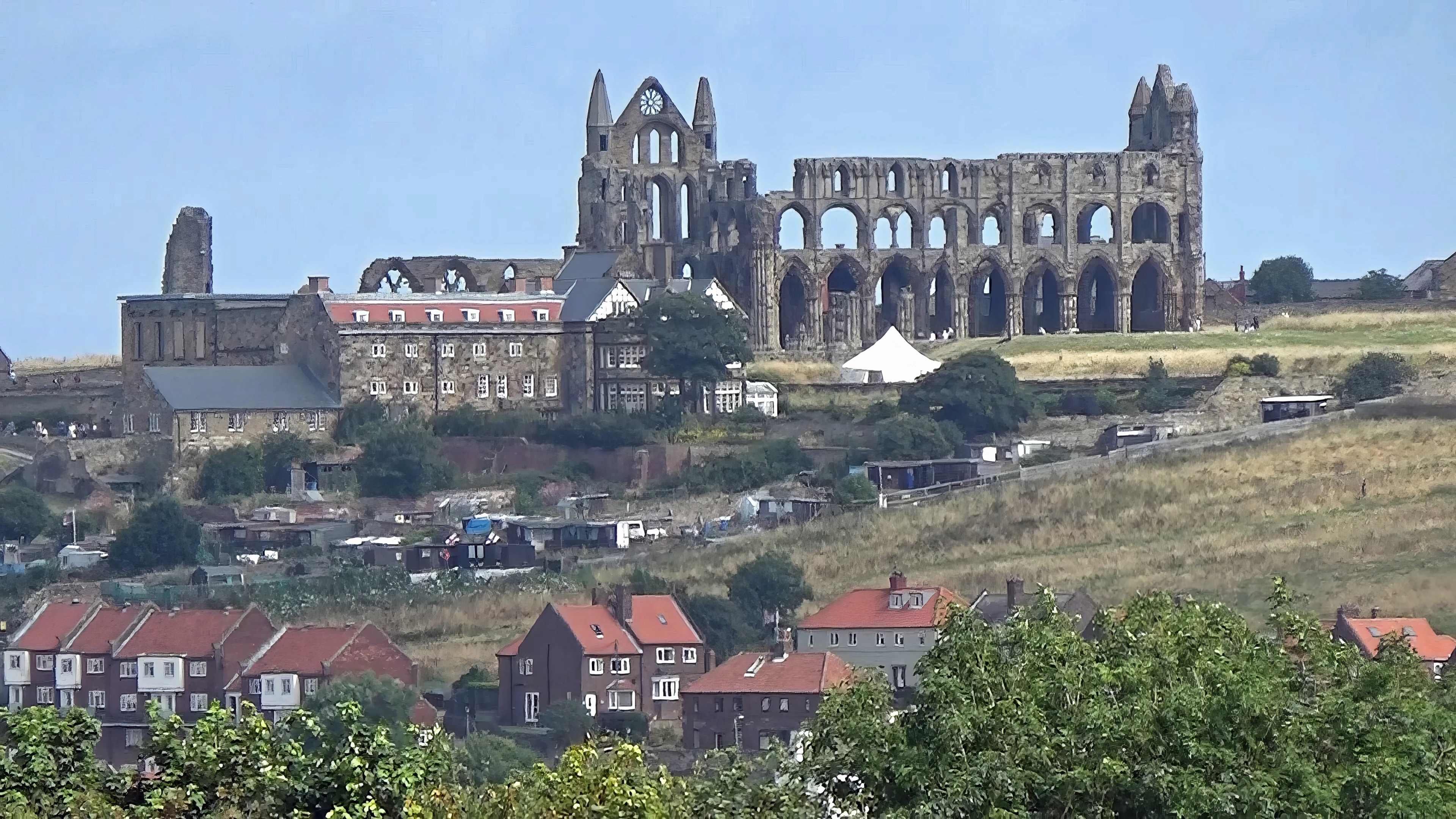Whitby Abbey and Youth Hostel from the Cinder Track’s Larpool Viaduct over the River Esk