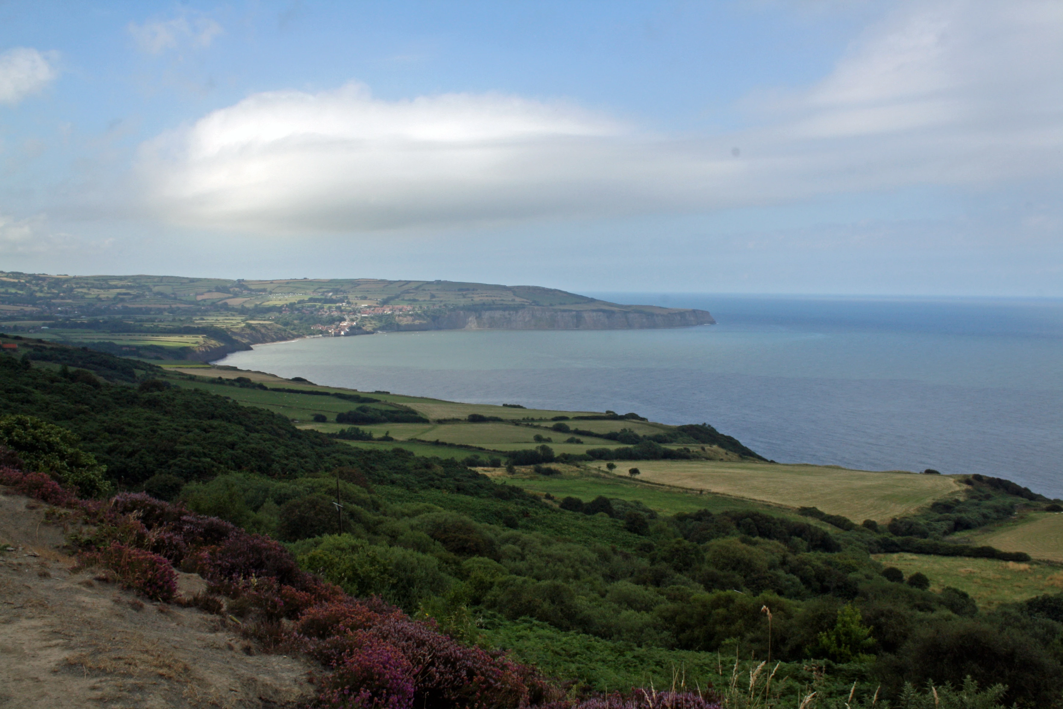 Looking back to Robin Hood’s Bay from the railway path approaching Ravenscar