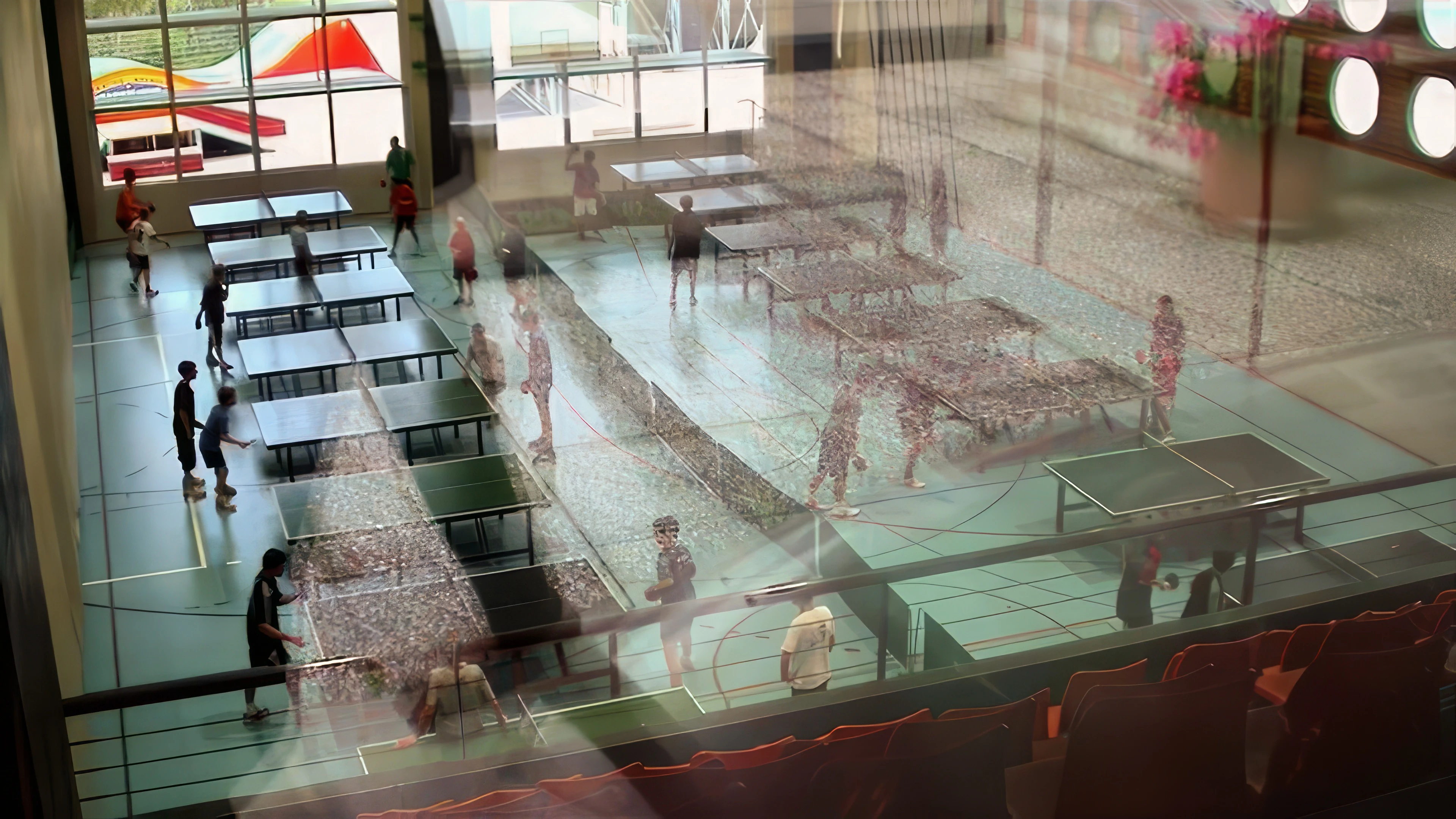 Sixteen table-tennis tables tucked away in one of many halls