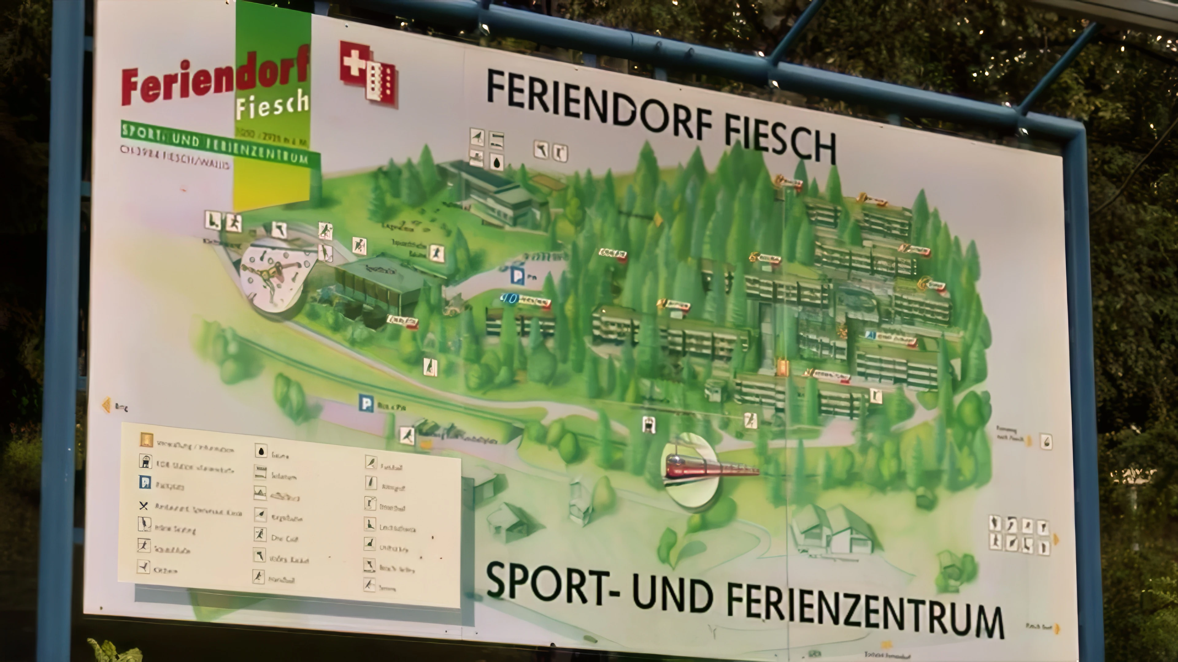 Welcome sign for Fiesch Sports Holiday Resort.