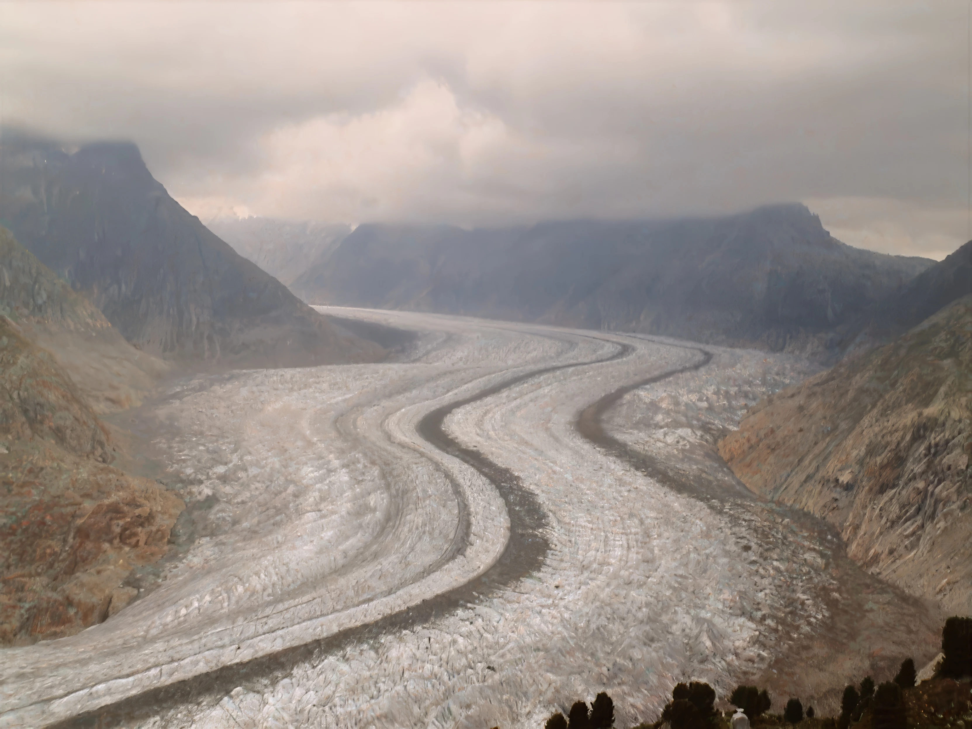 Camcorder still of the Great Aletsch Glacier.