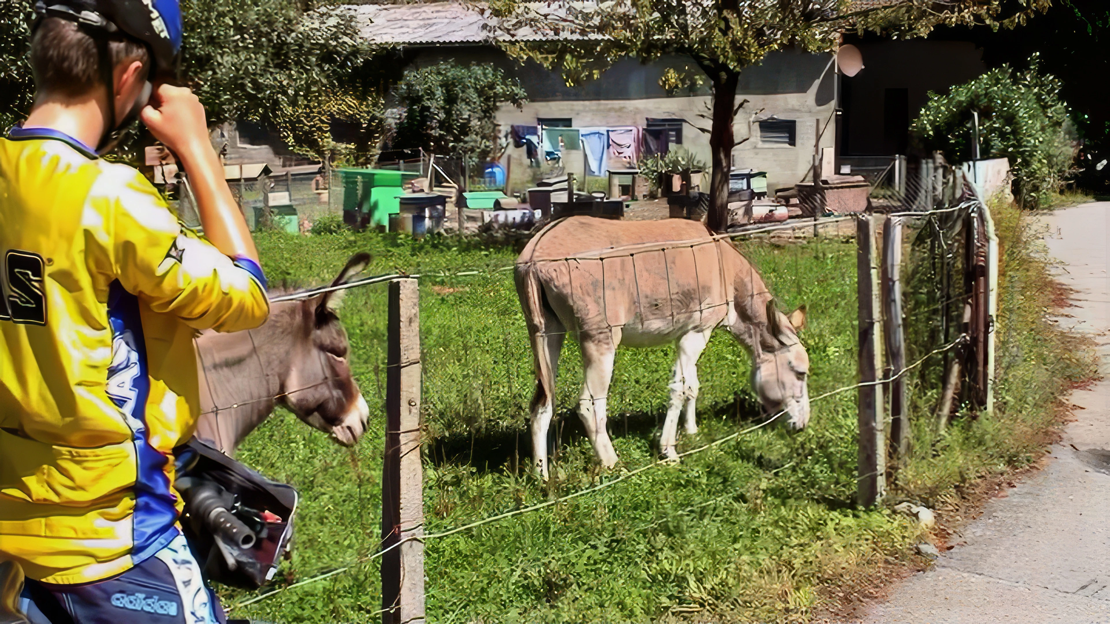 Friendly donkeys on the approach to Saint-Maurice, 24.4 miles in.