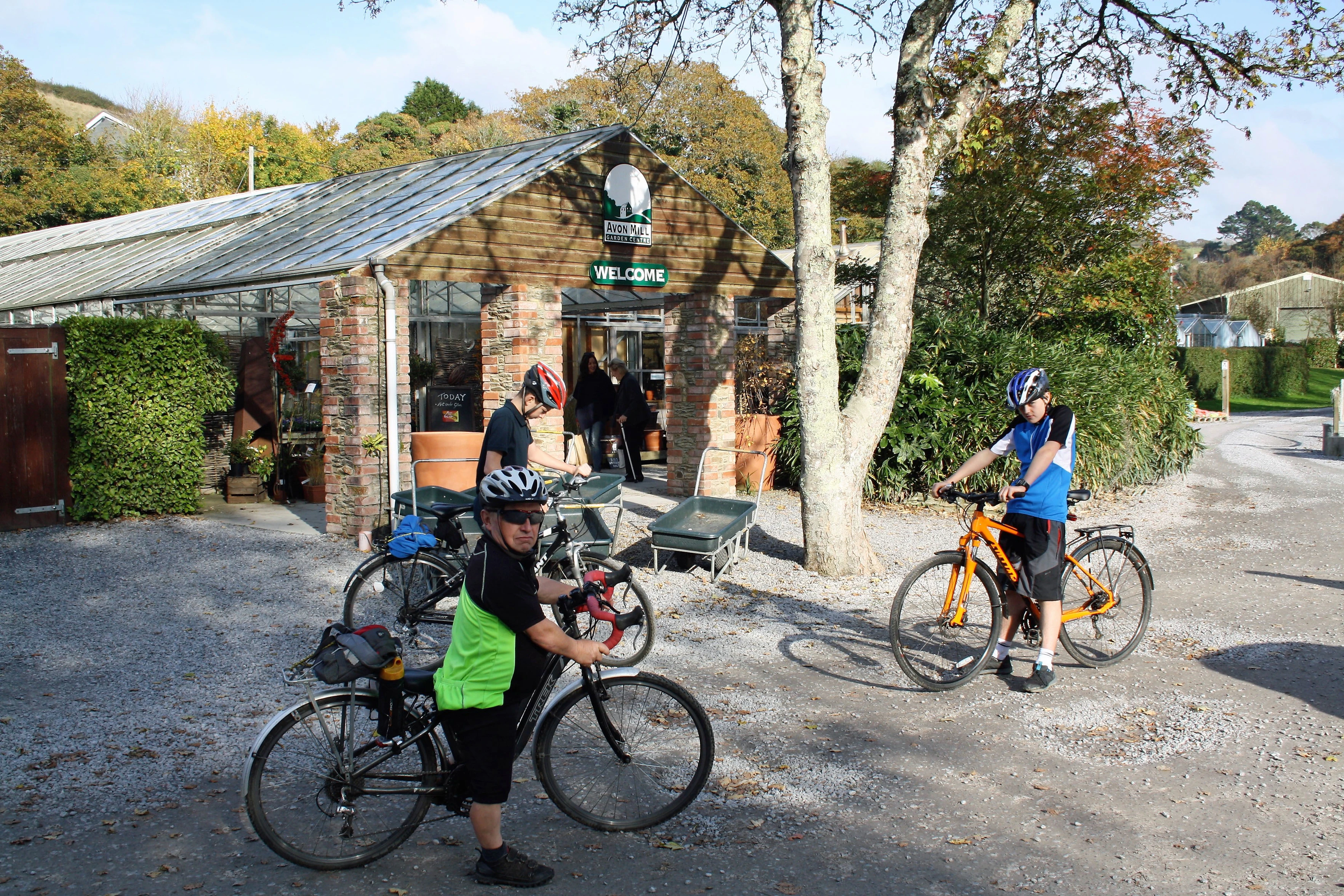John, George and Dillan at the Avon Mill Garden Centre entrance, Loddiswell