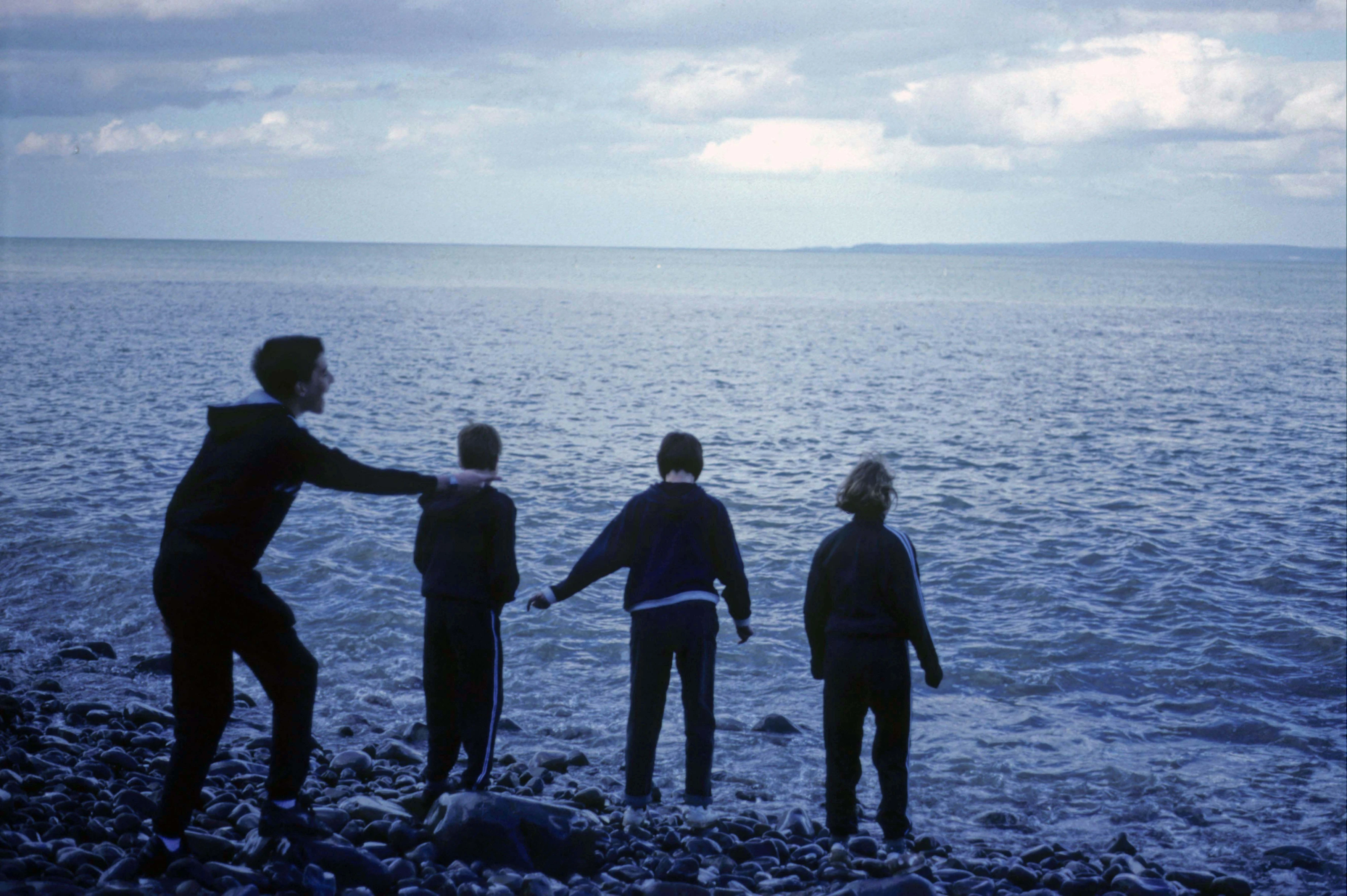Our youngsters larking about on Clovelly's pebbly beach.