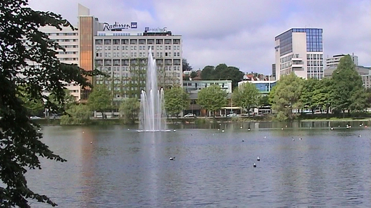 Breiavatnet fountain near Stavanger Cathedral, 1.9 miles into the ride.