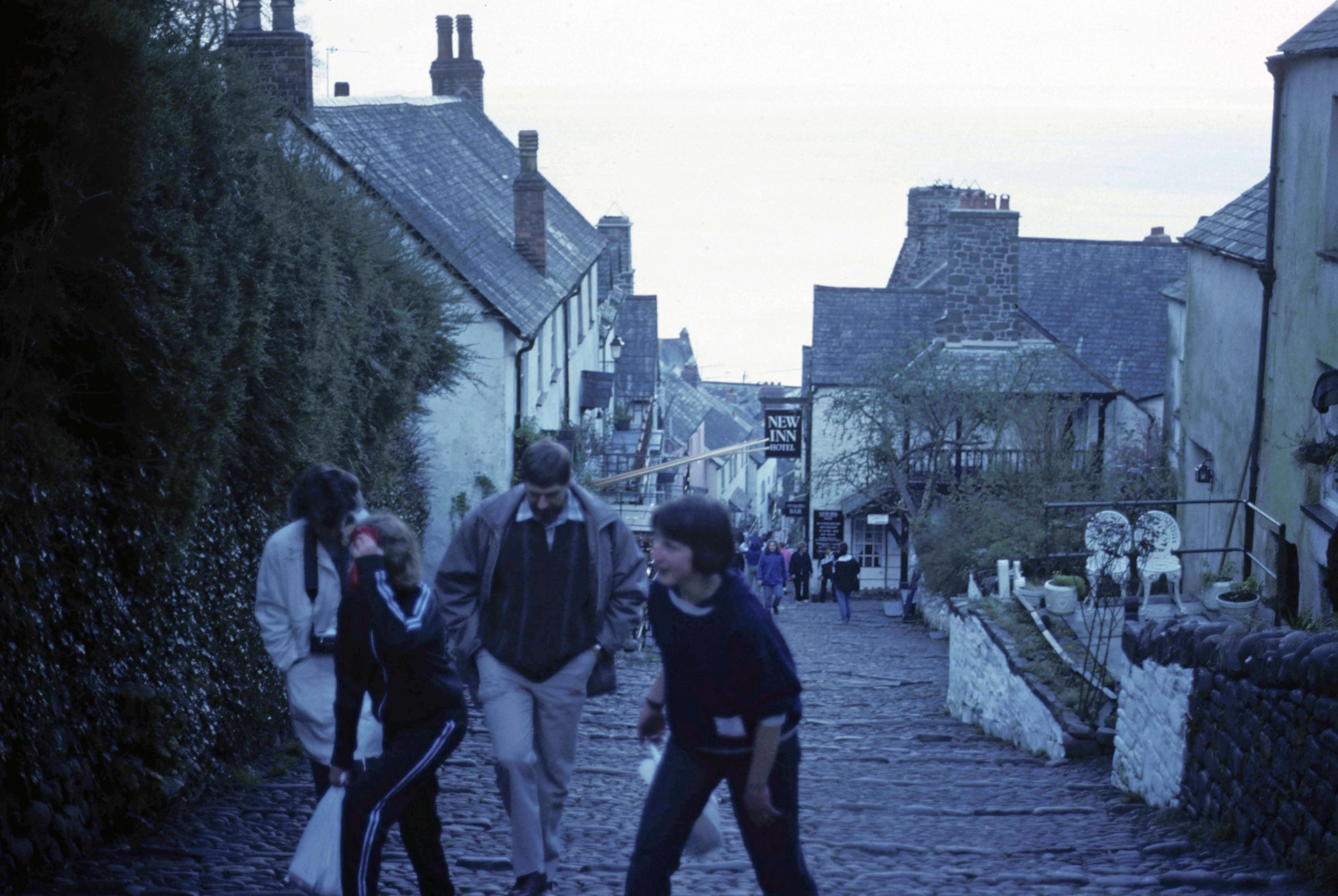 Looking down Clovelly's narrow, cobbled street as we trudge back to the bikes.