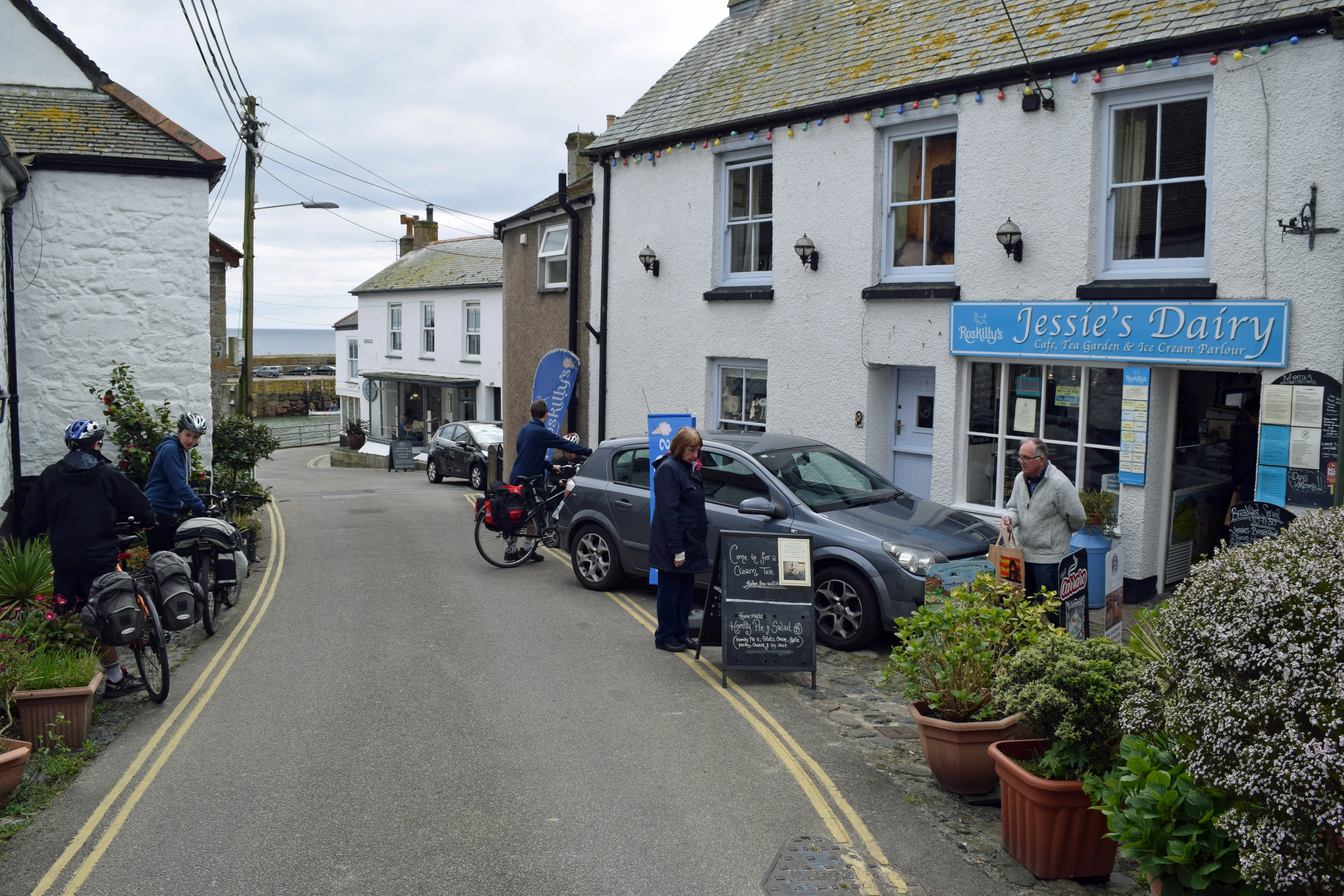 Leaving Jessie's Dairy, Mousehole, after lunch.