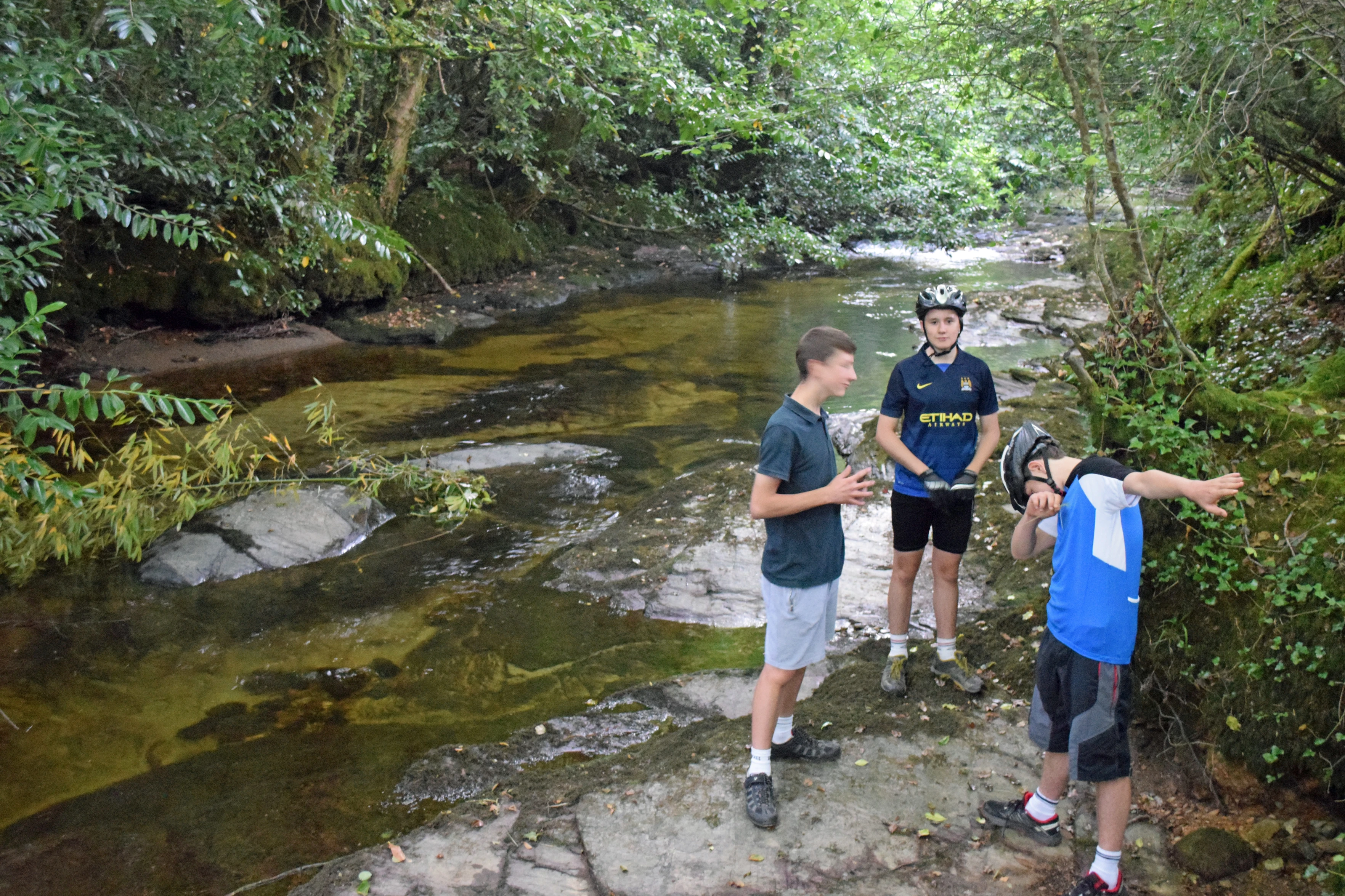 George, Jude and Dillan by the River Avon between Avonwick and Beneknowle