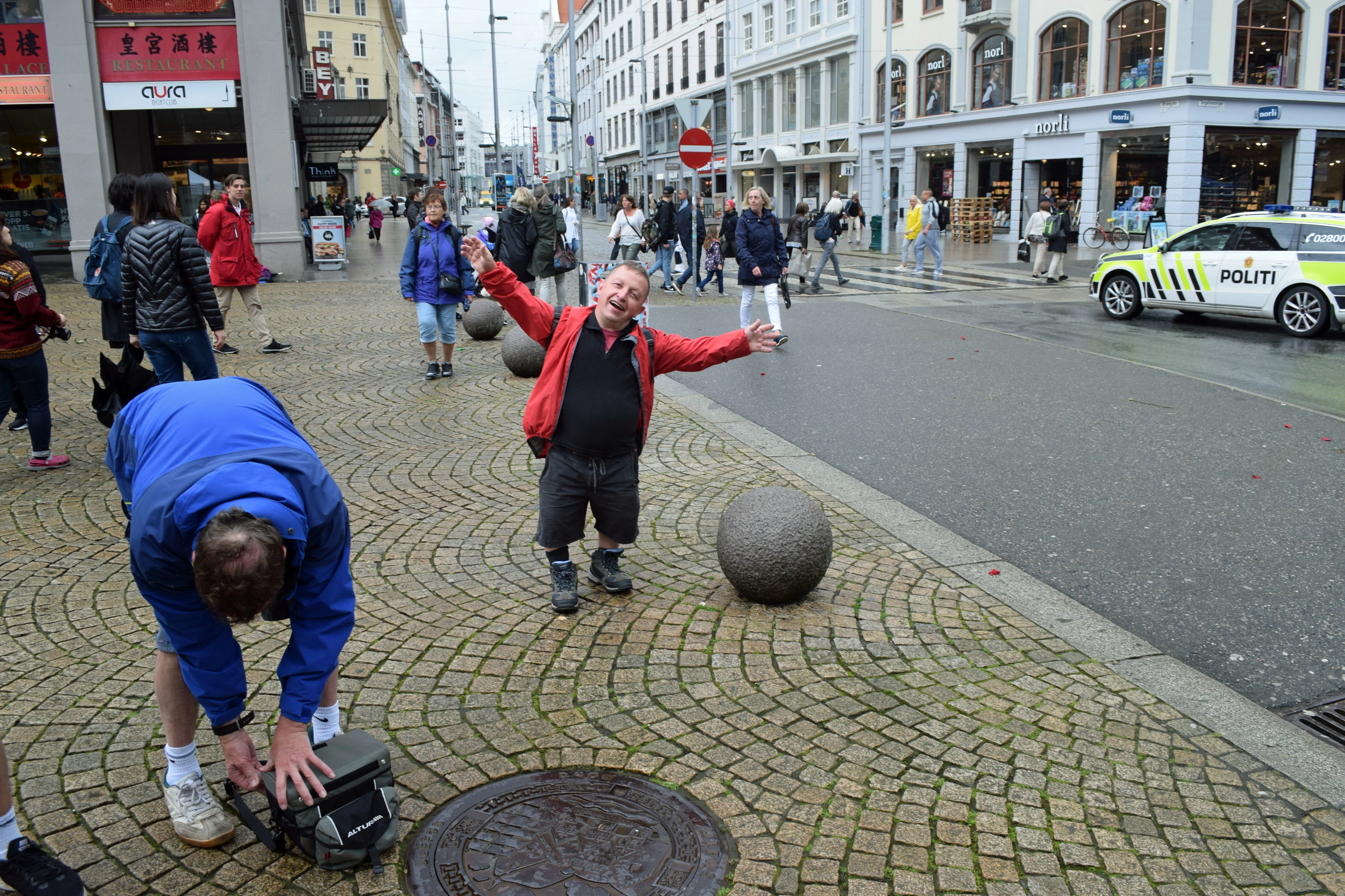 John enjoying Bergen near the Sailor's Monument on Strandgaten