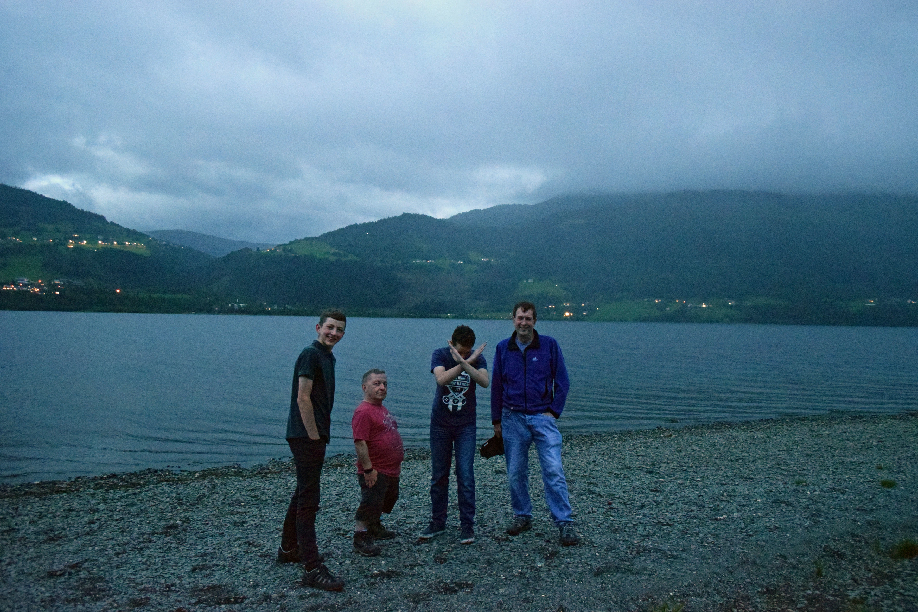 The group on the banks of Voss Lake at Voss youth hostel