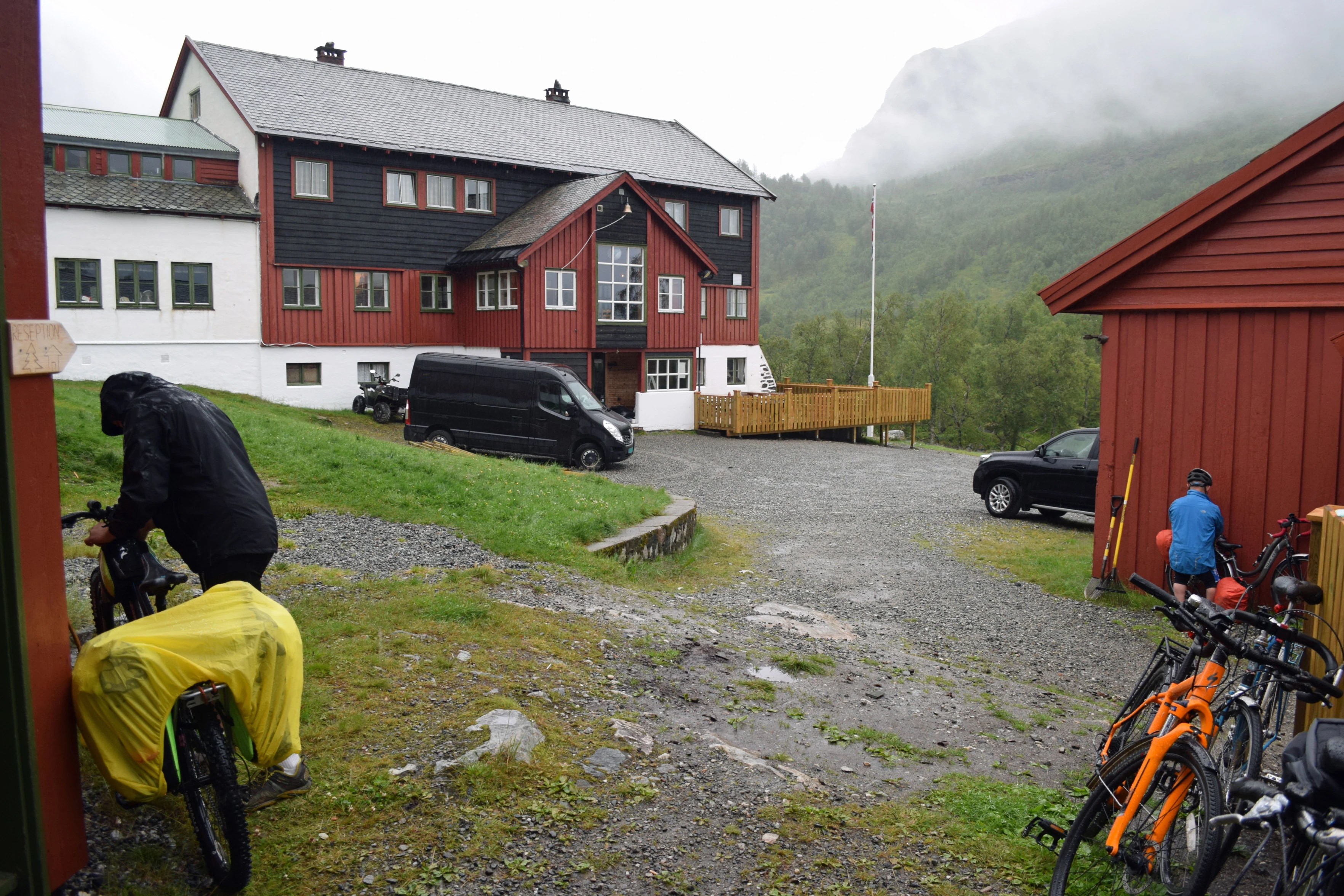 Preparing to leave Mjølfjell youth hostel on a wet morning