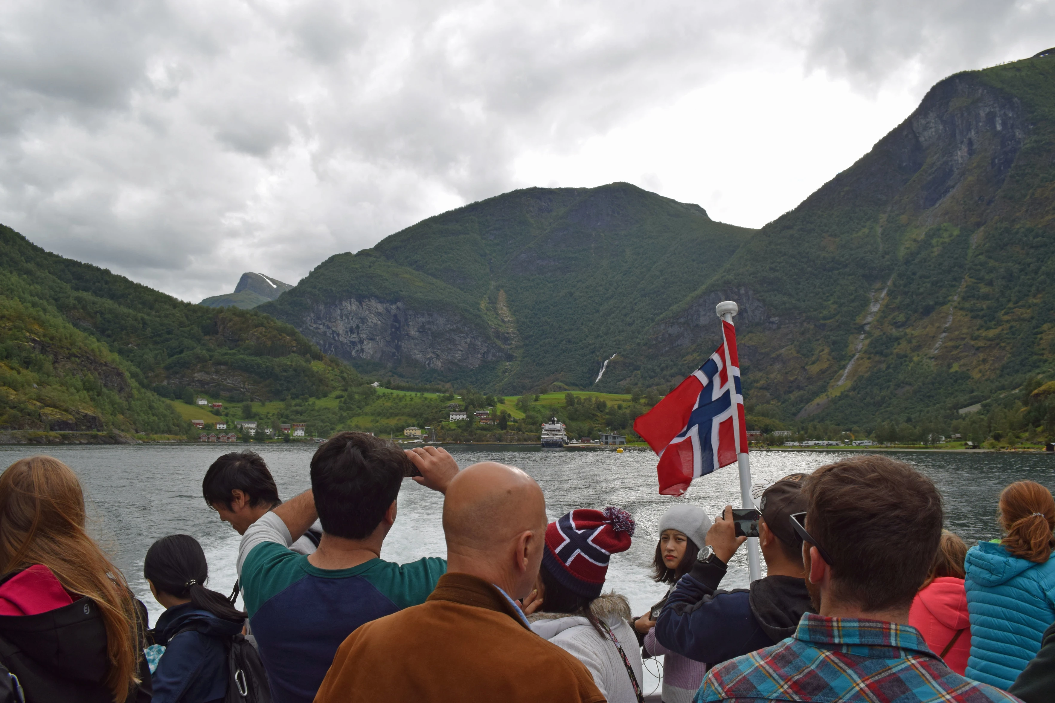 Looking back to Flåm from Aurlandsfjord