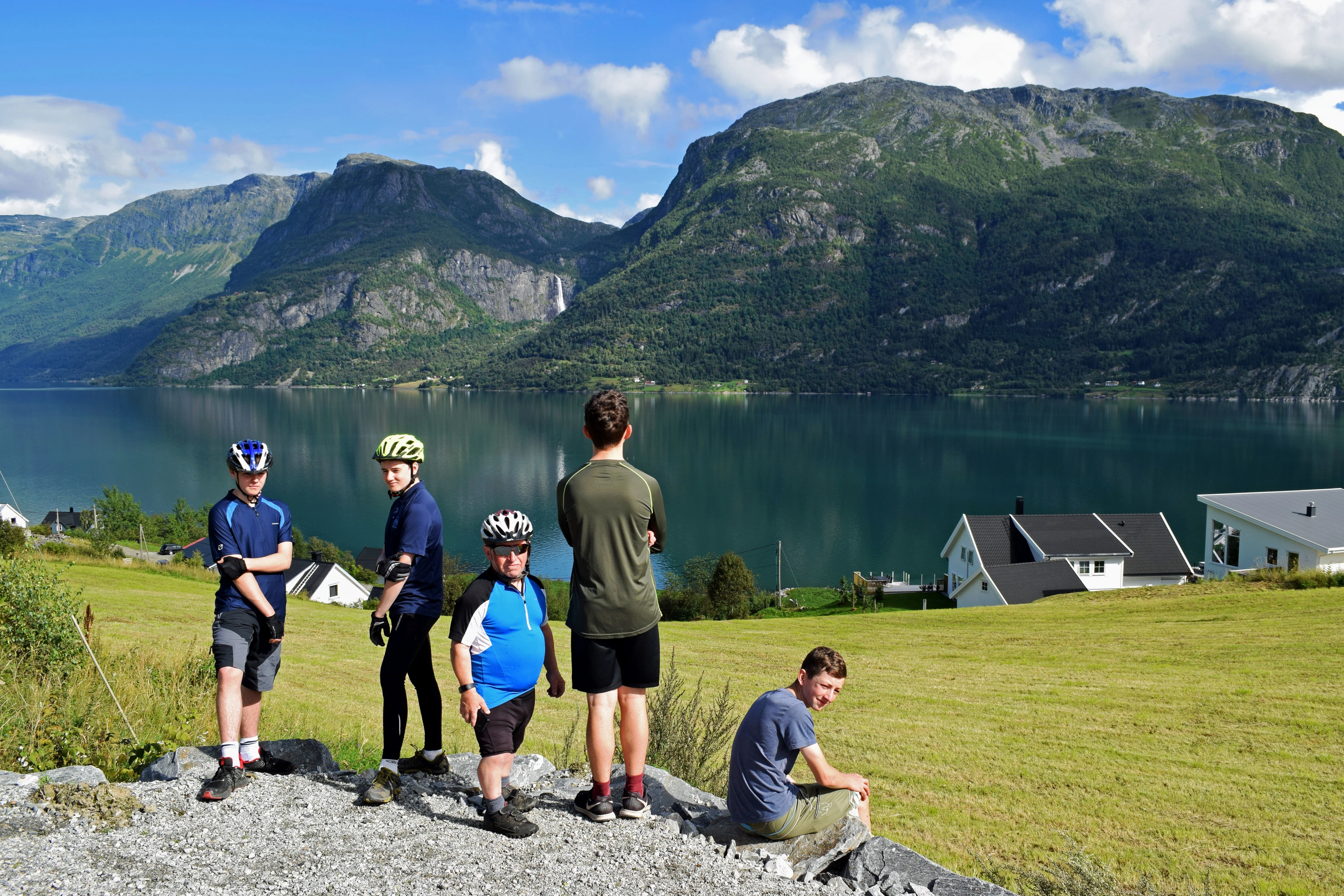 The group with Lustrafjord behind, on the Gaupne–Høyheimsvik peninsula