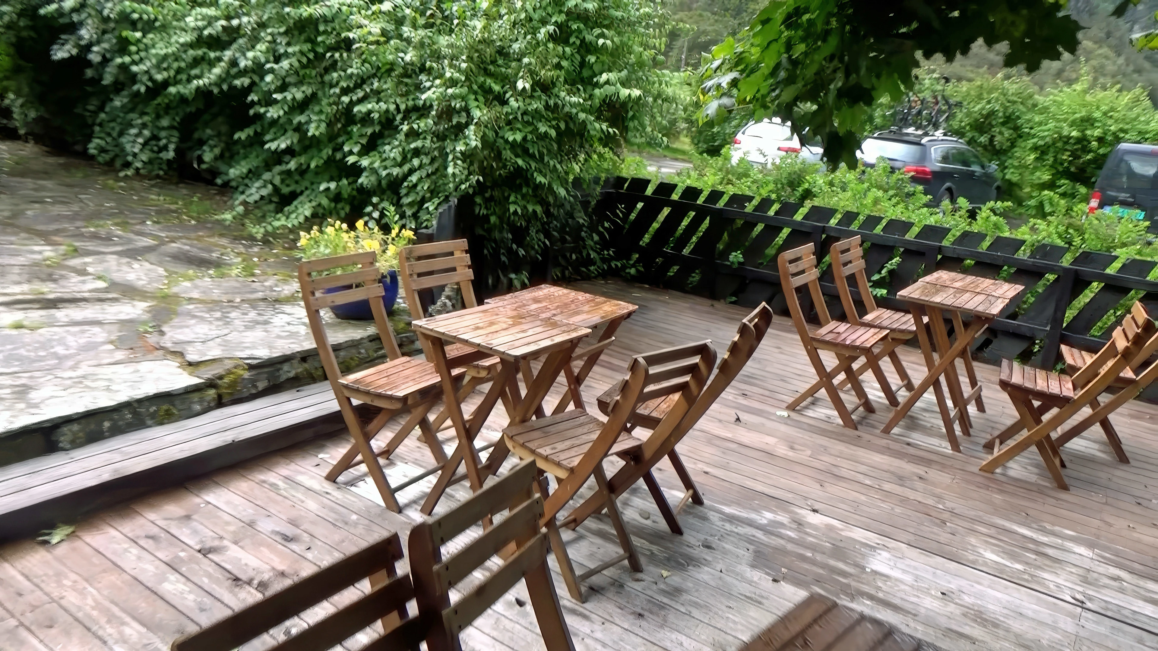 Skjolden youth hostel patio, where we barely streamed Game of Thrones.