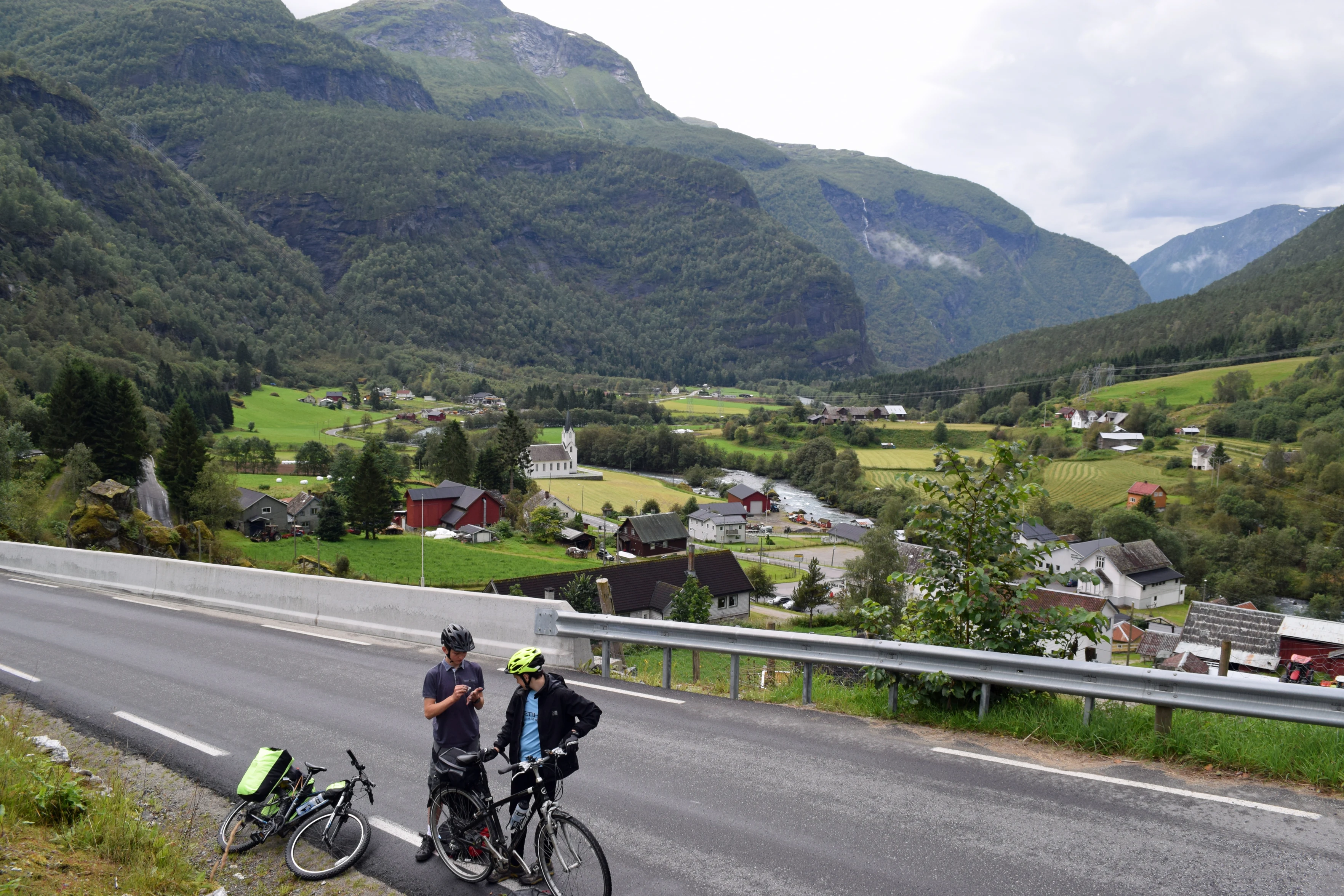 Looking back to Fortun after George’s chain fix; garage in distance.