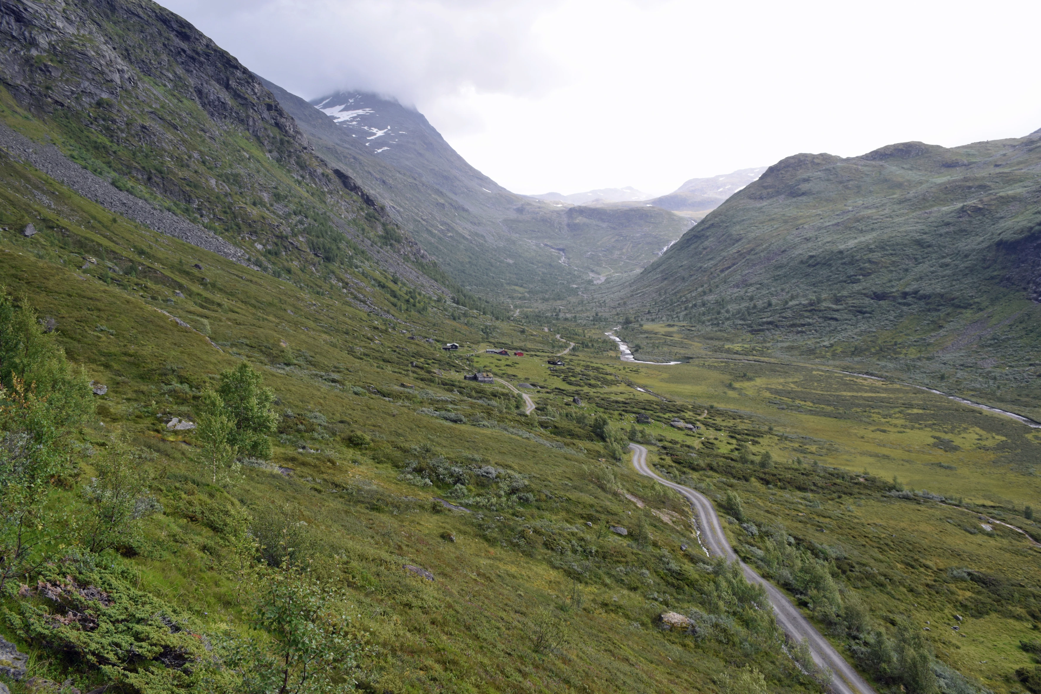 Isolated mountain valley from the hairpin after Turtagrø Hotel, 950m.