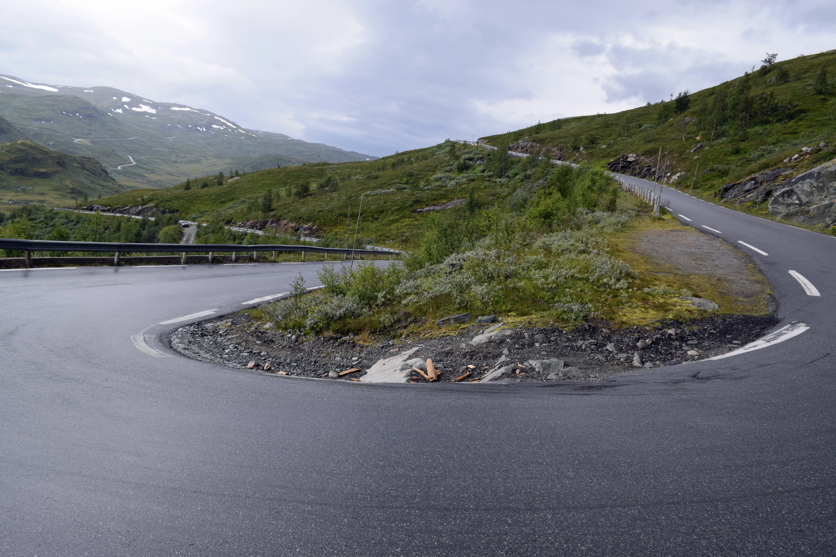 The first hairpin bend after the Turtagrø Hotel, 950m.
