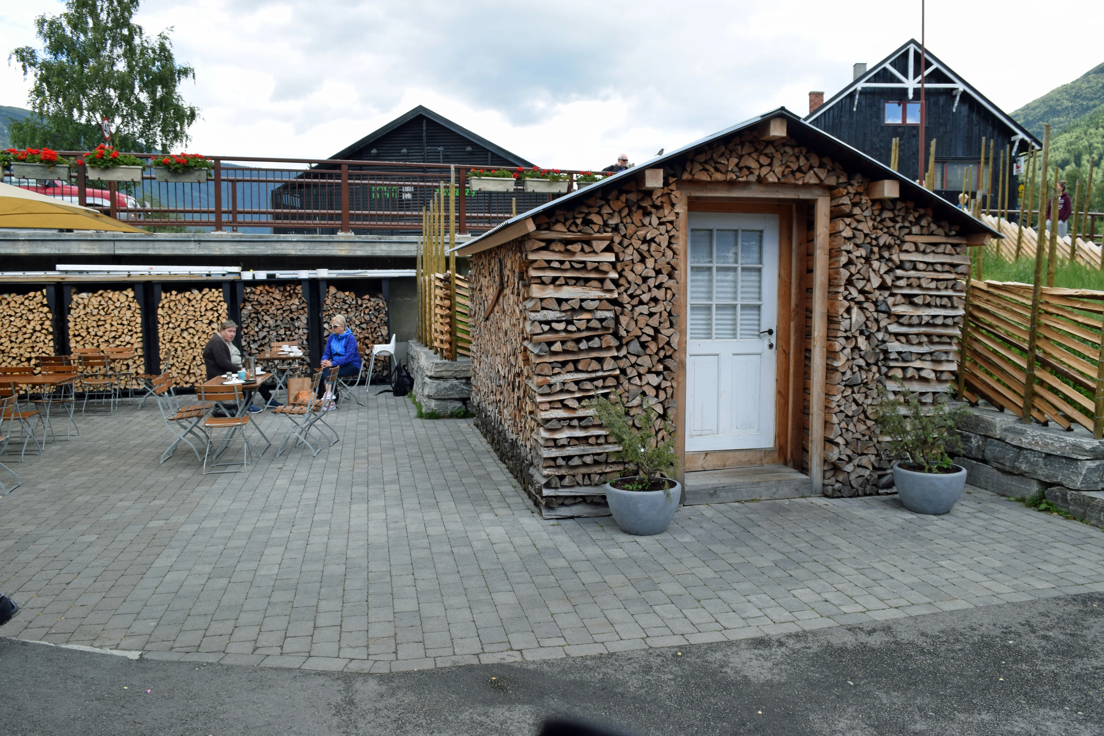 Firewood stacks in the bakery courtyard, Lom. A Norwegian bestseller explains how to chop, stack, and even build with it.