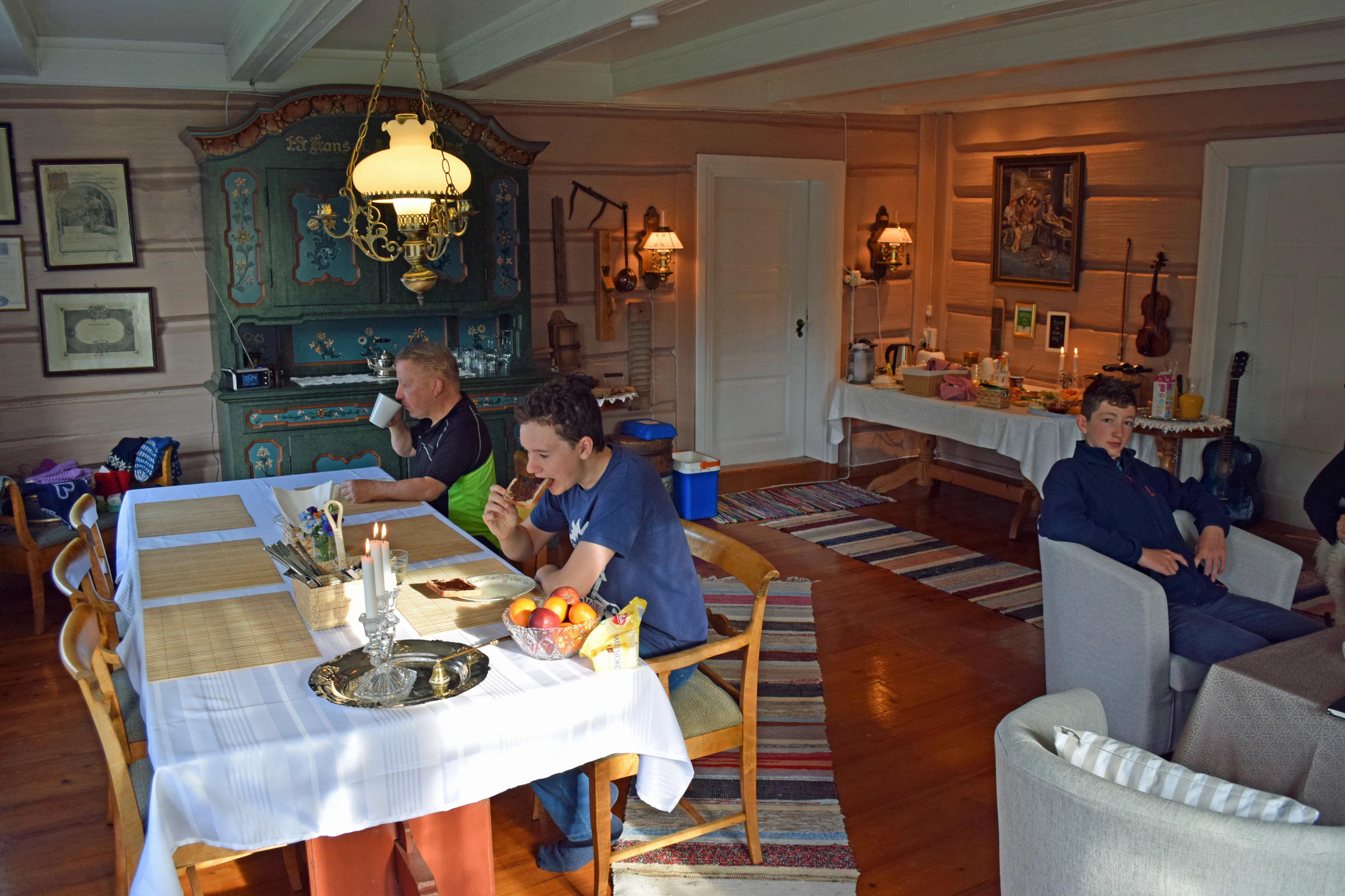 Breakfast spread at the Aasaaren Nedre farmhouse.