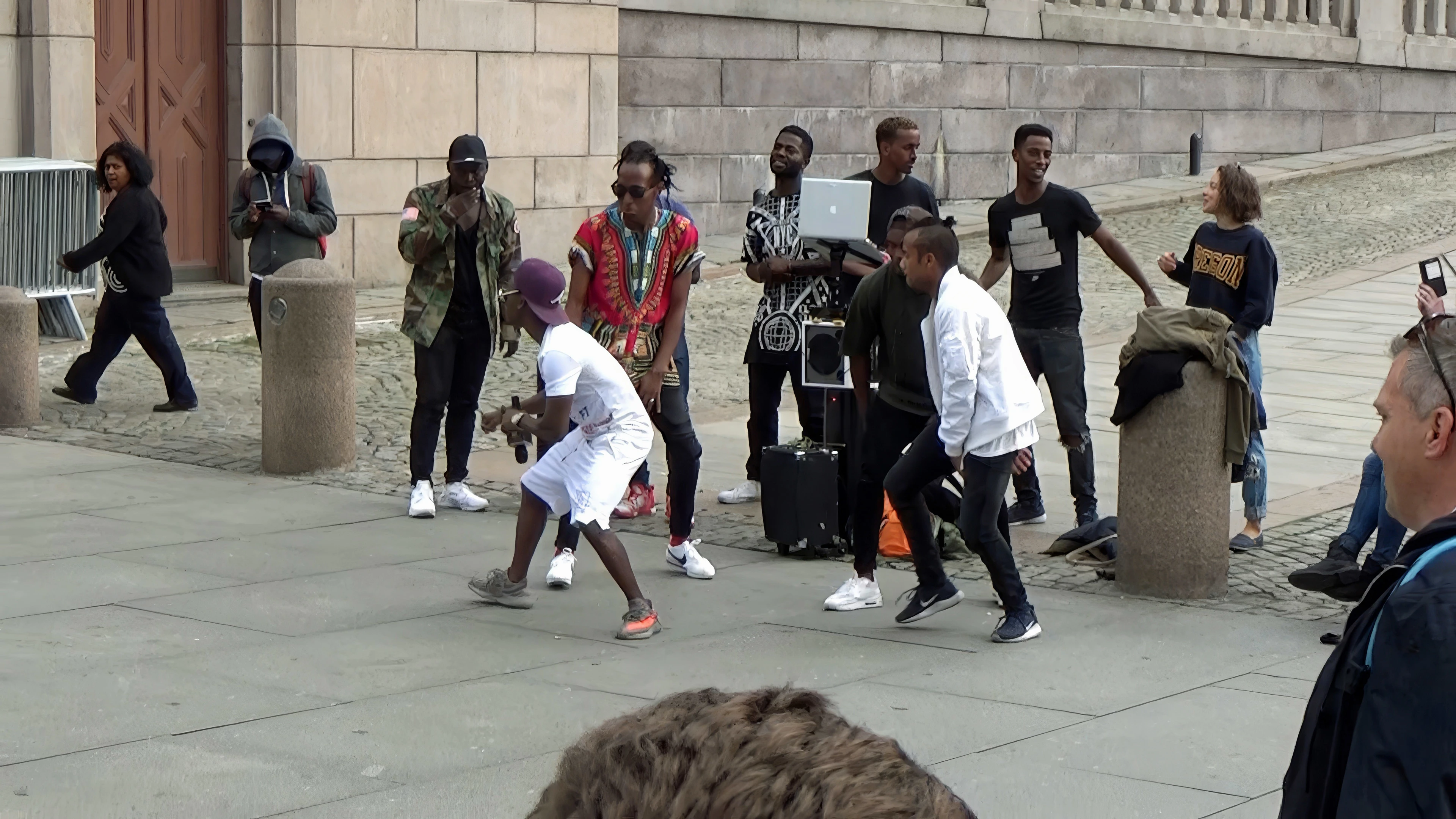 Dance band opposite the Freia chocolate shop on Karl Johans Gate, Oslo.