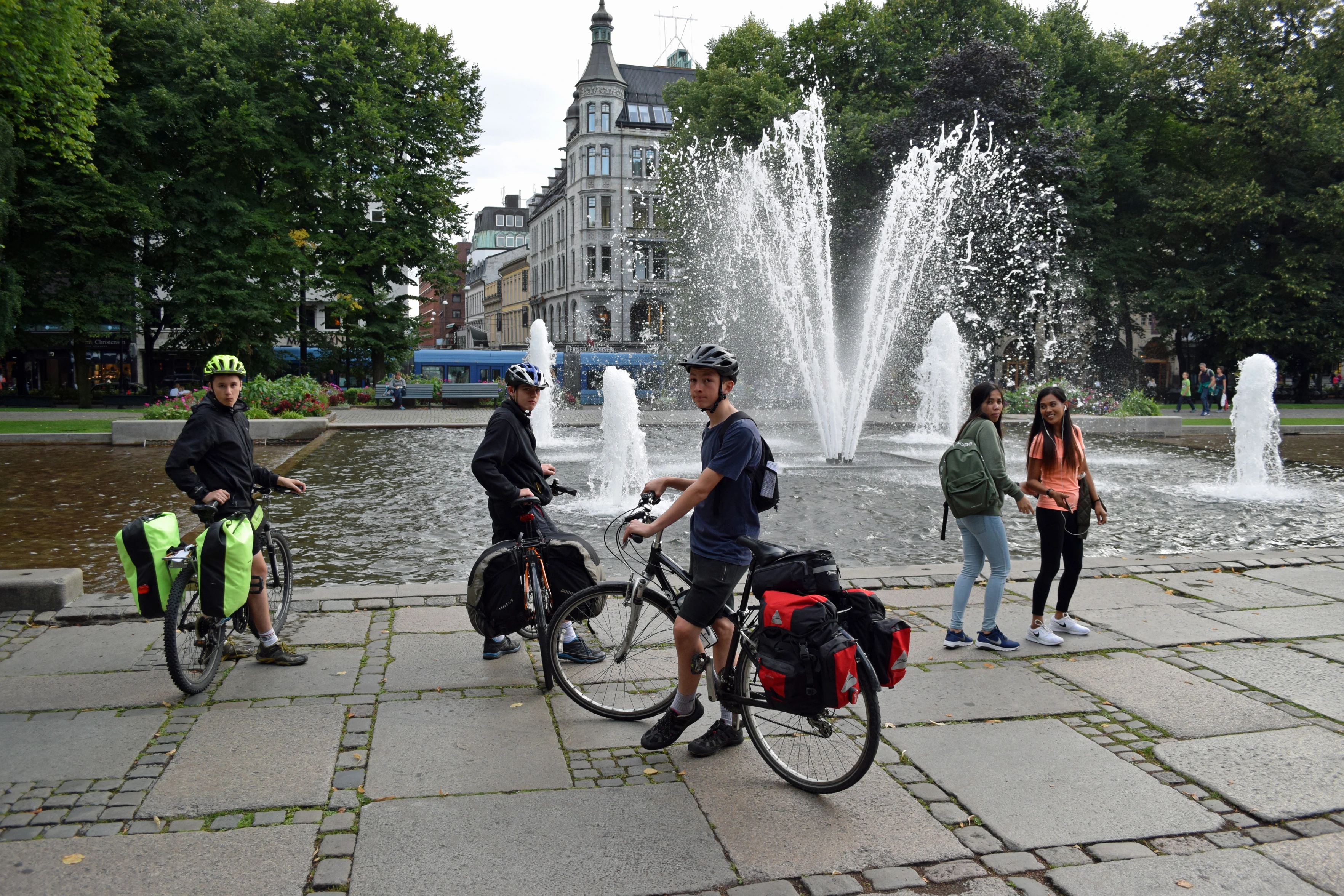 Fountains near the National Theatre on Karl Johans Gate, Oslo.