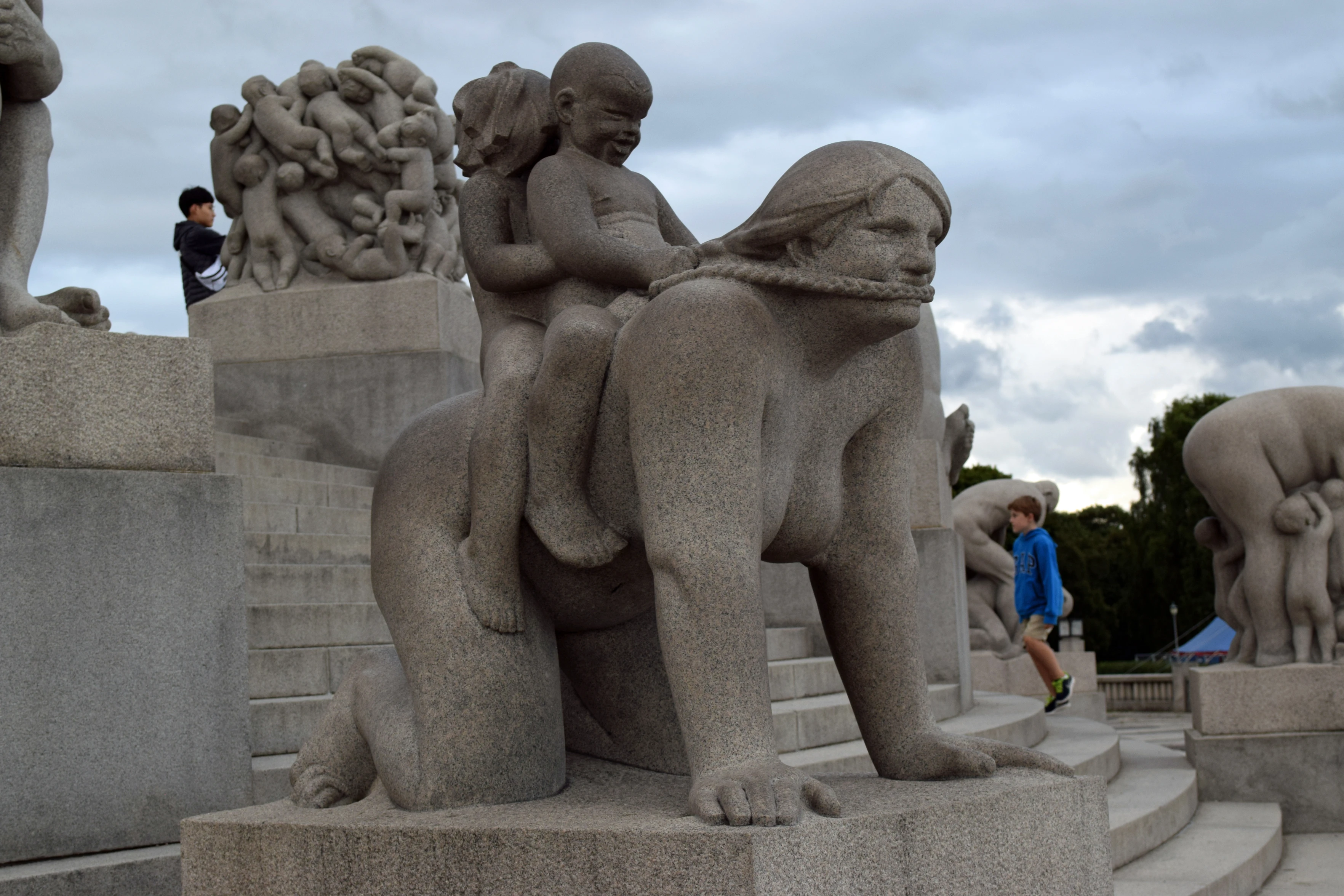 "Boy and girl riding on mother's back", 1916.