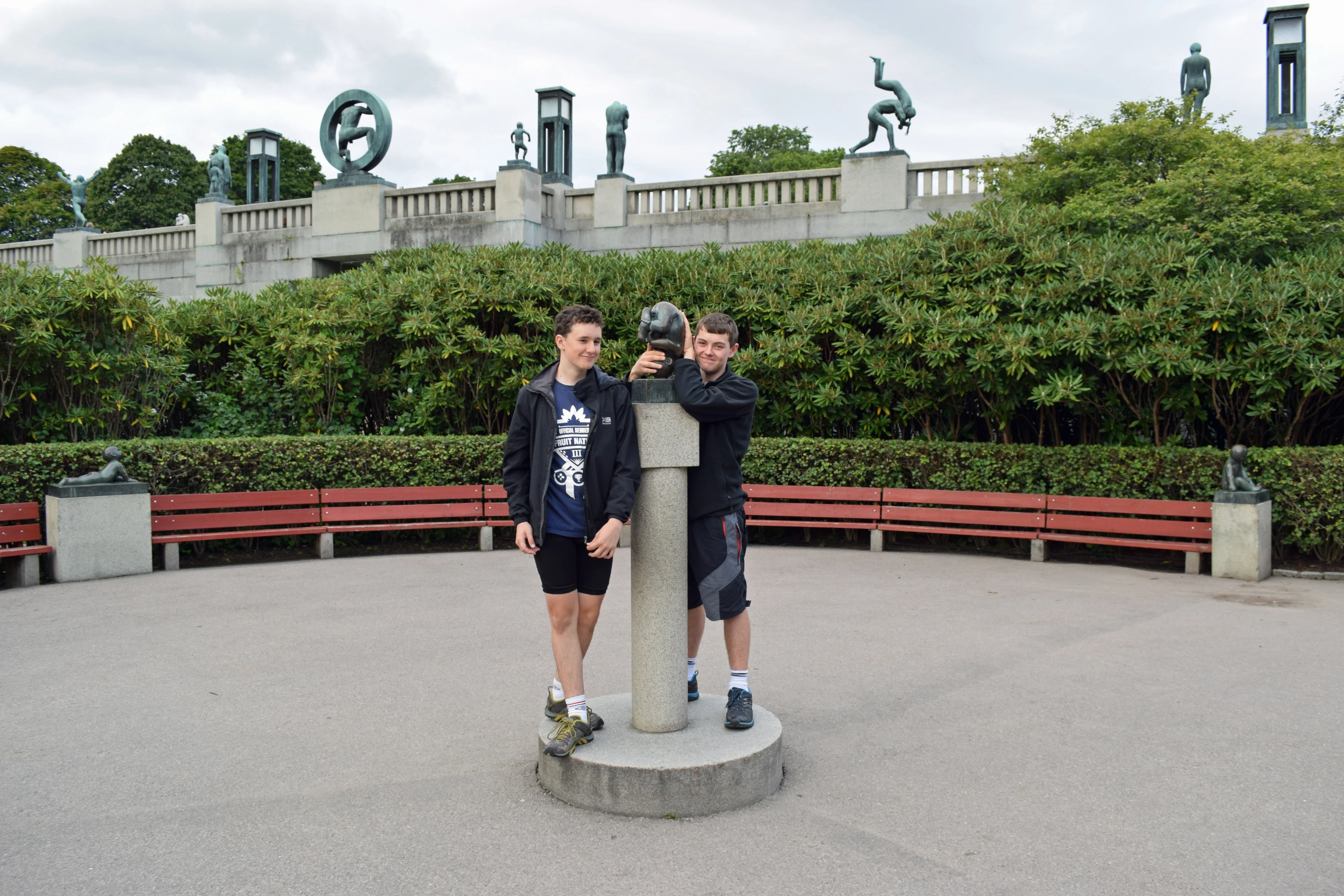 Jude and Dillan with the "Figure of an unborn child" in the children's playground below the bridge.