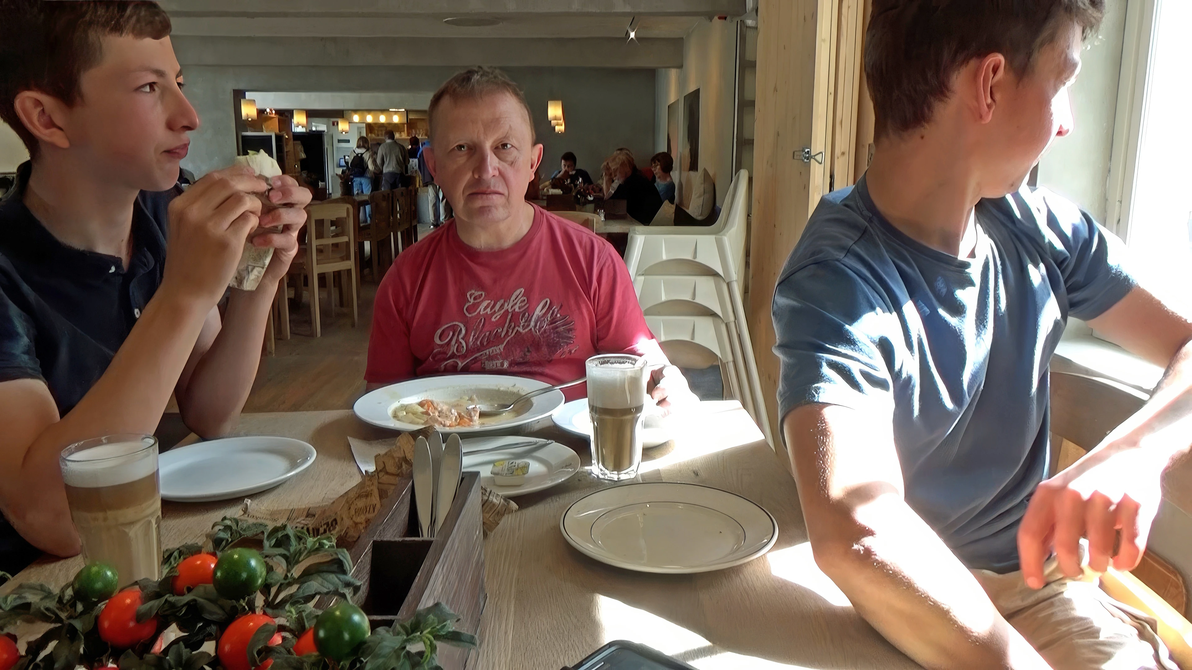 John enjoys his very expensive fish soup in the Arkadia café, Bygdøy, Oslo