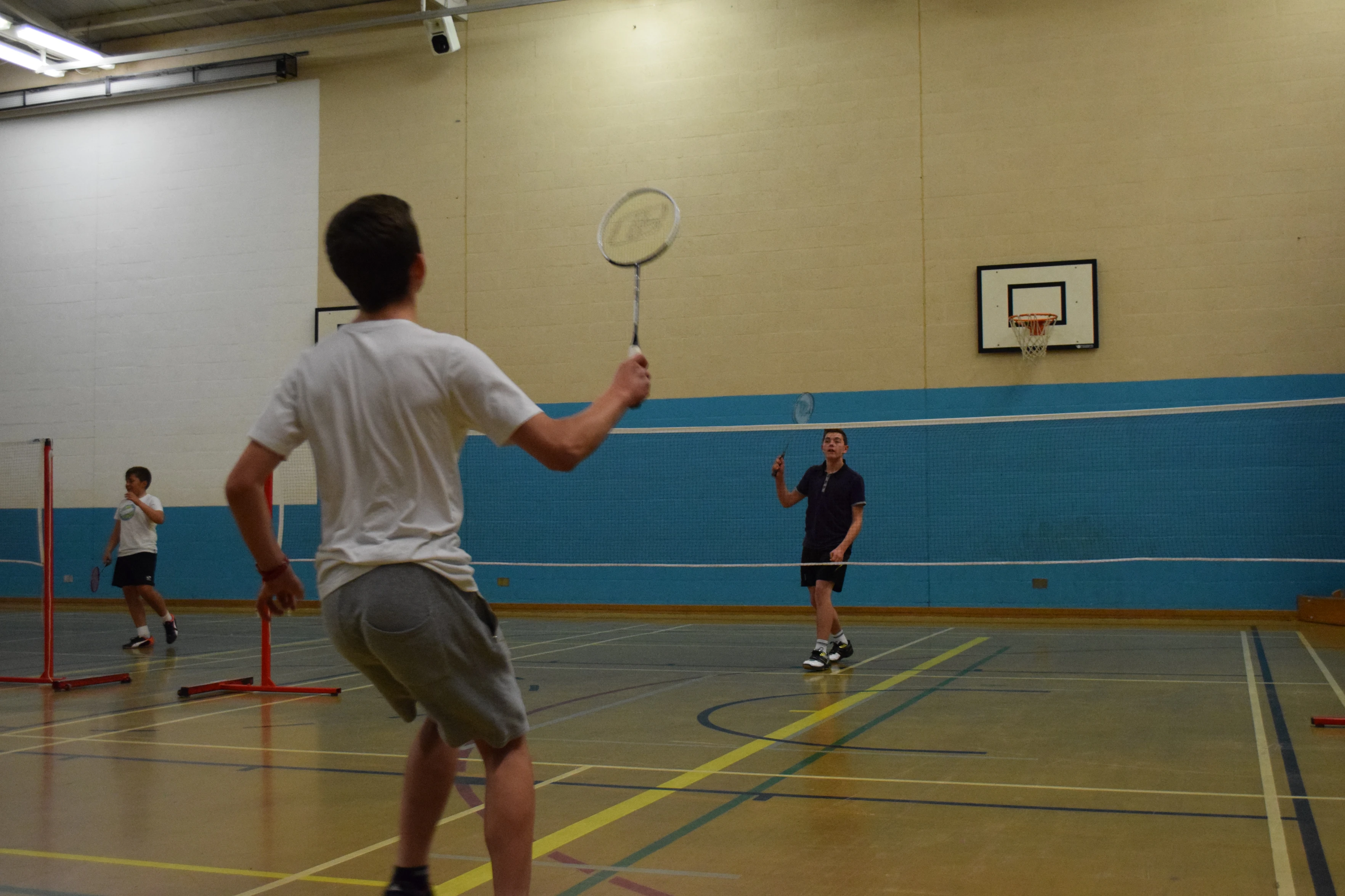 George and Dillan at Ashmoor Leisure Centre for badminton.