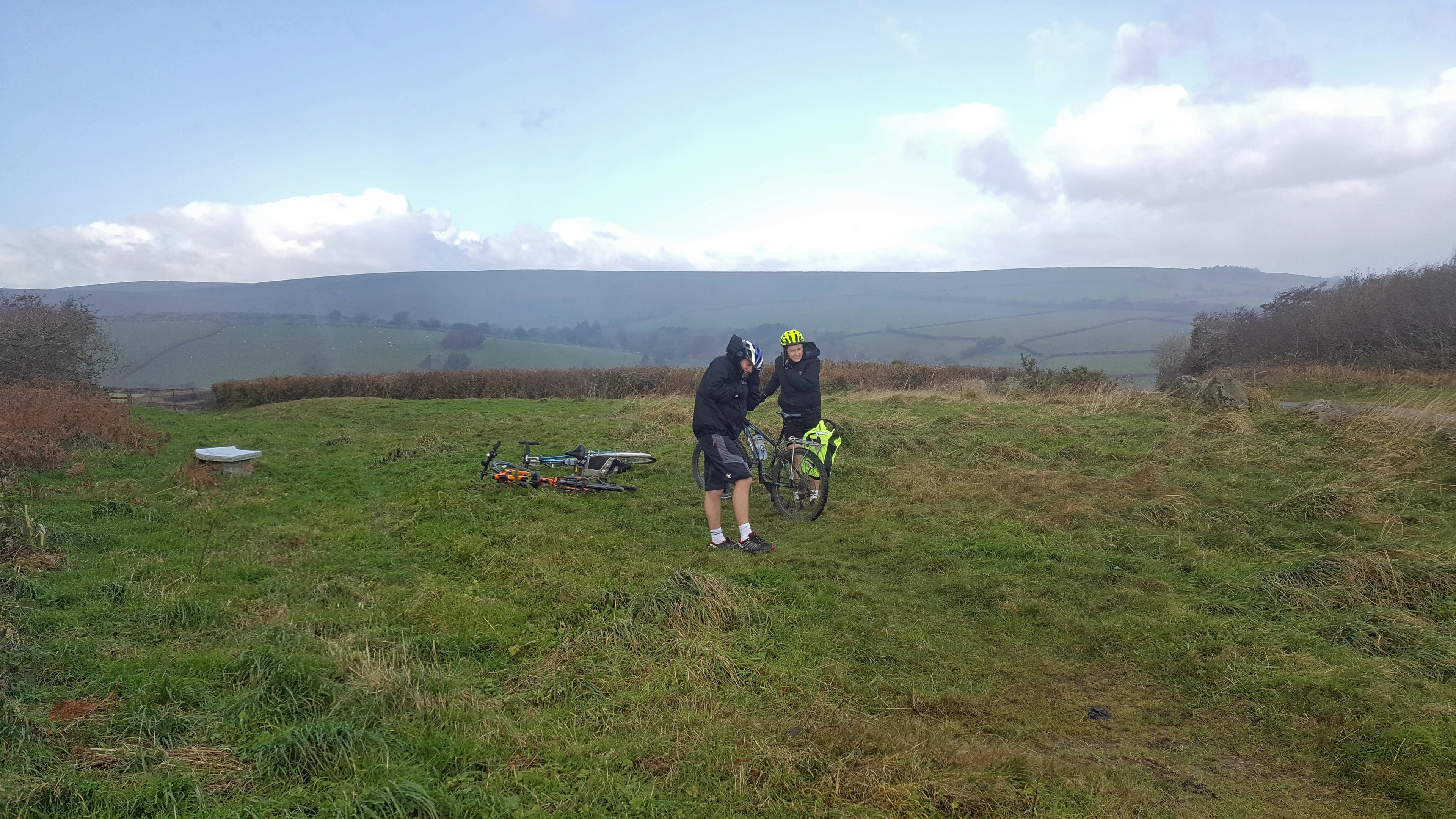 A squally shower catches us out on the hill between Bloody Pool and Gidley Bridge