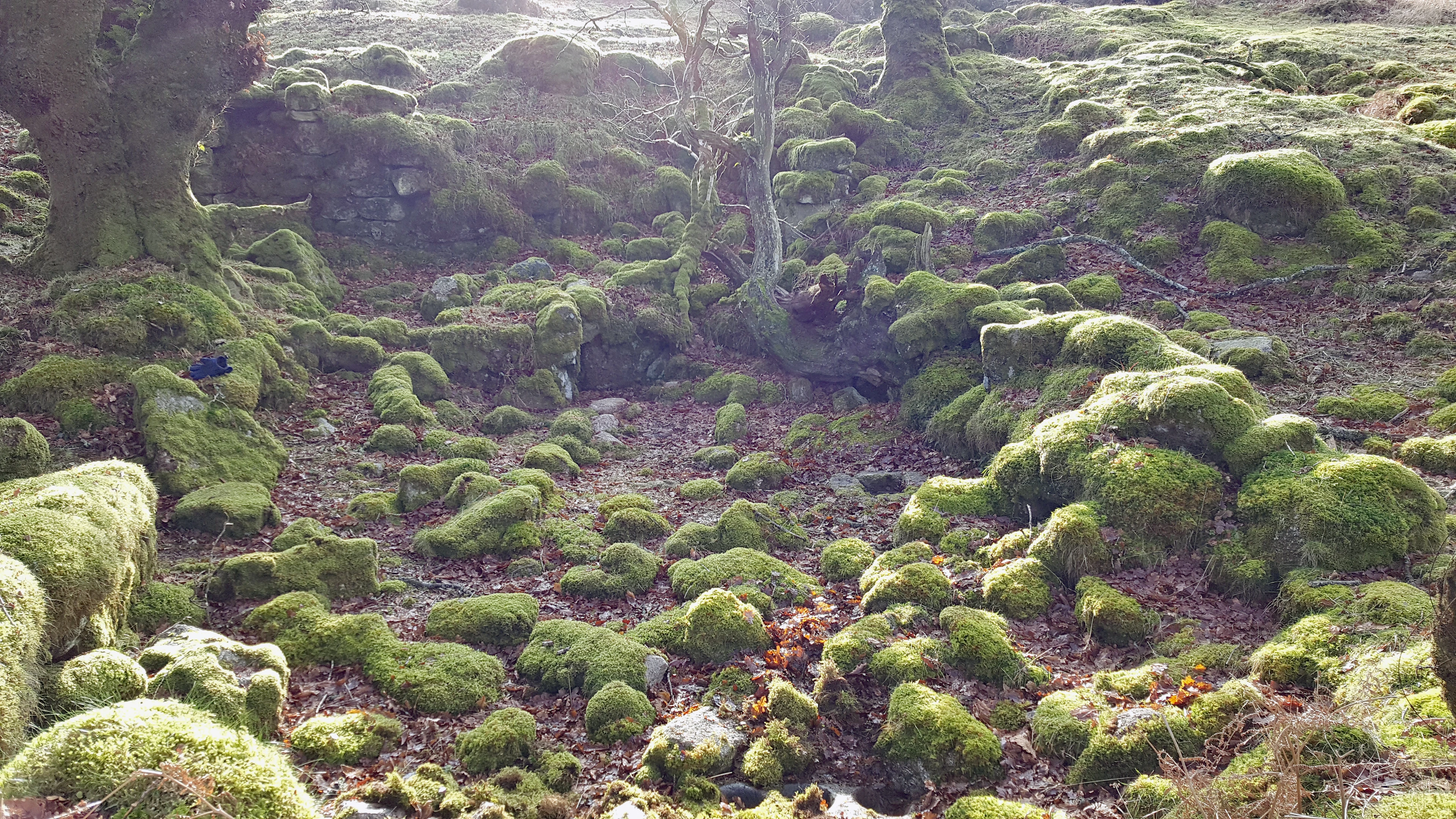 Rear of the Blowing House, showing Mould Stone, furnace and wheel pit.