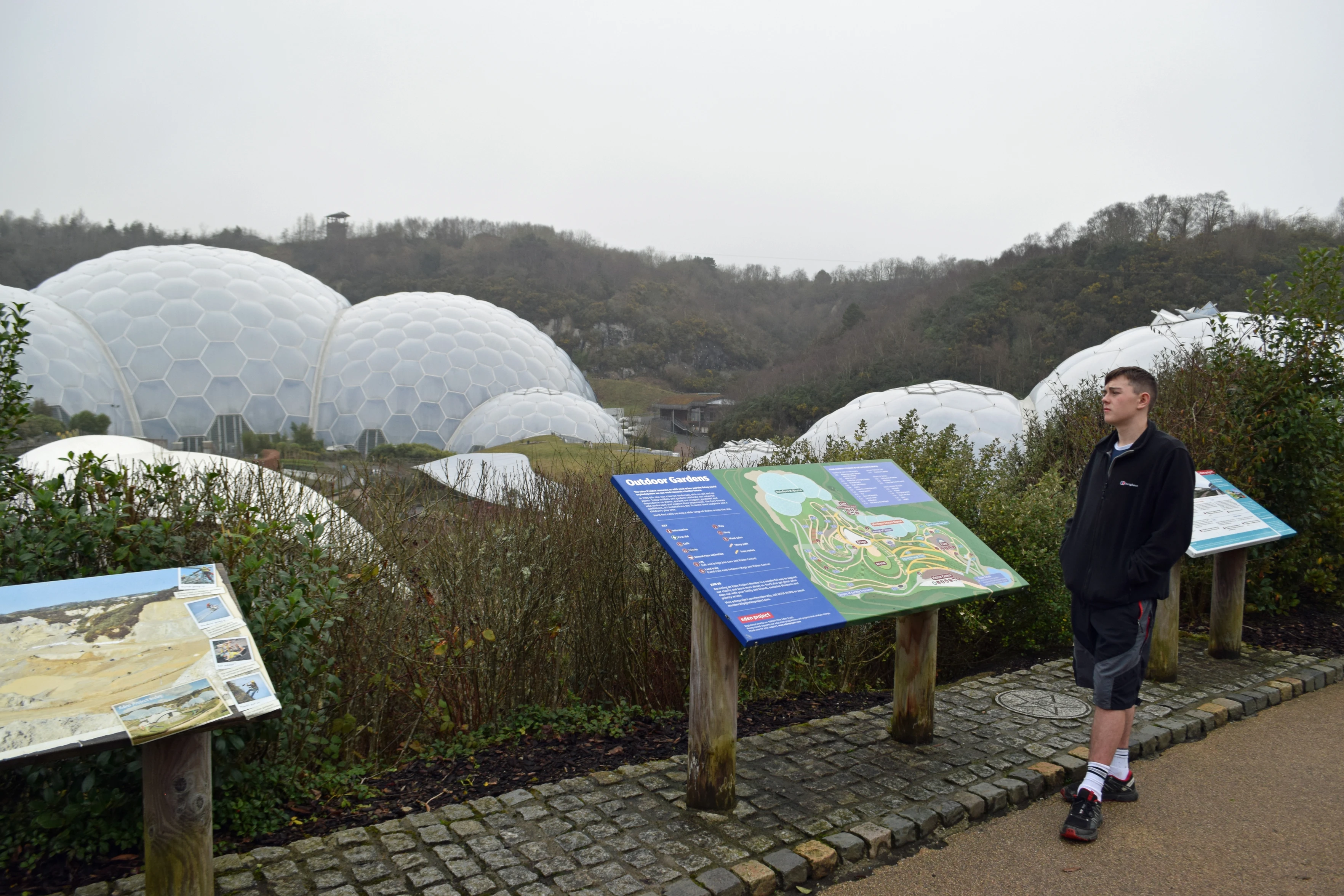 Dillan outside the Eden Project, heading back to the car.