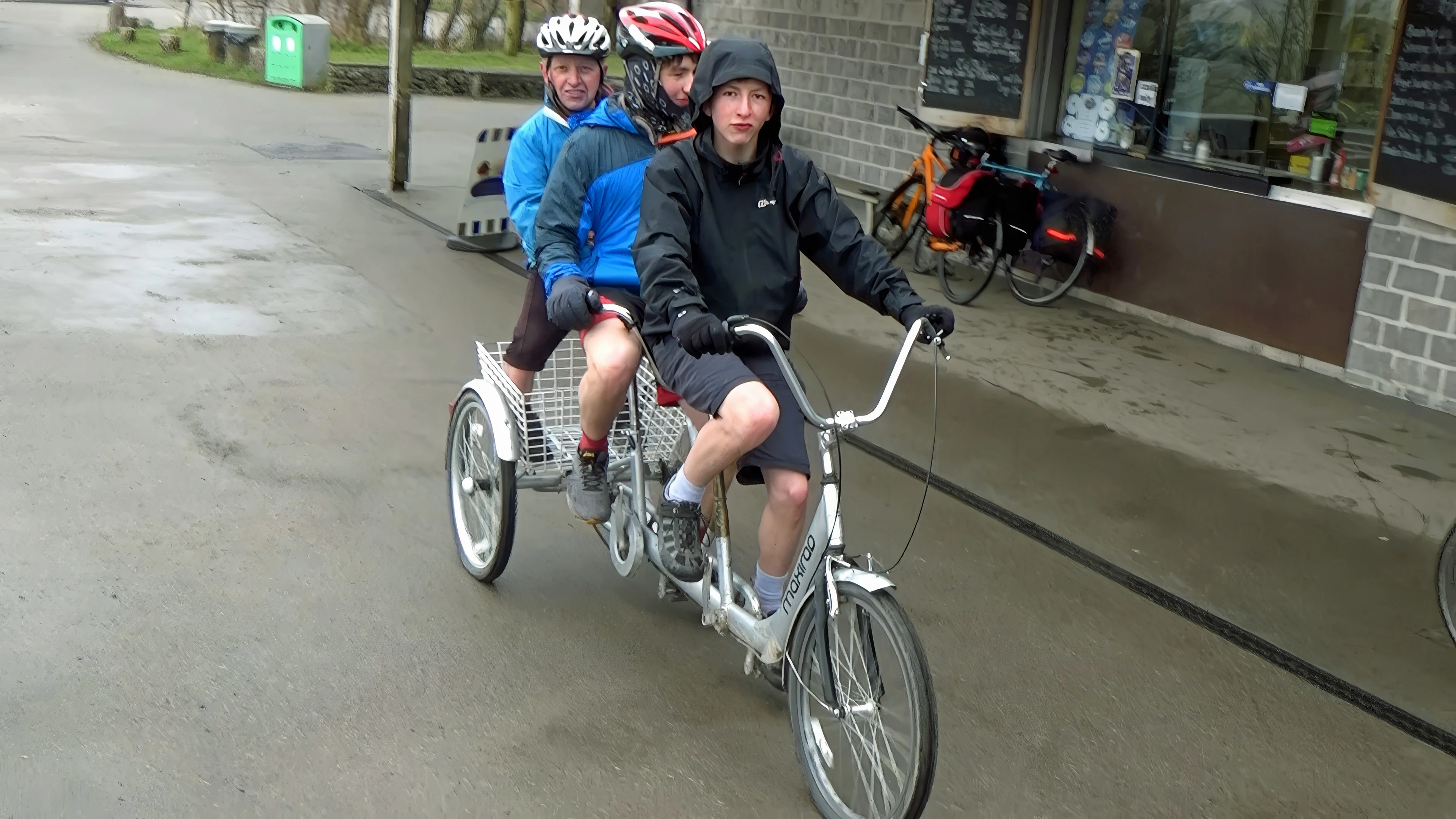 The Rogers family on the tandem shopping trike