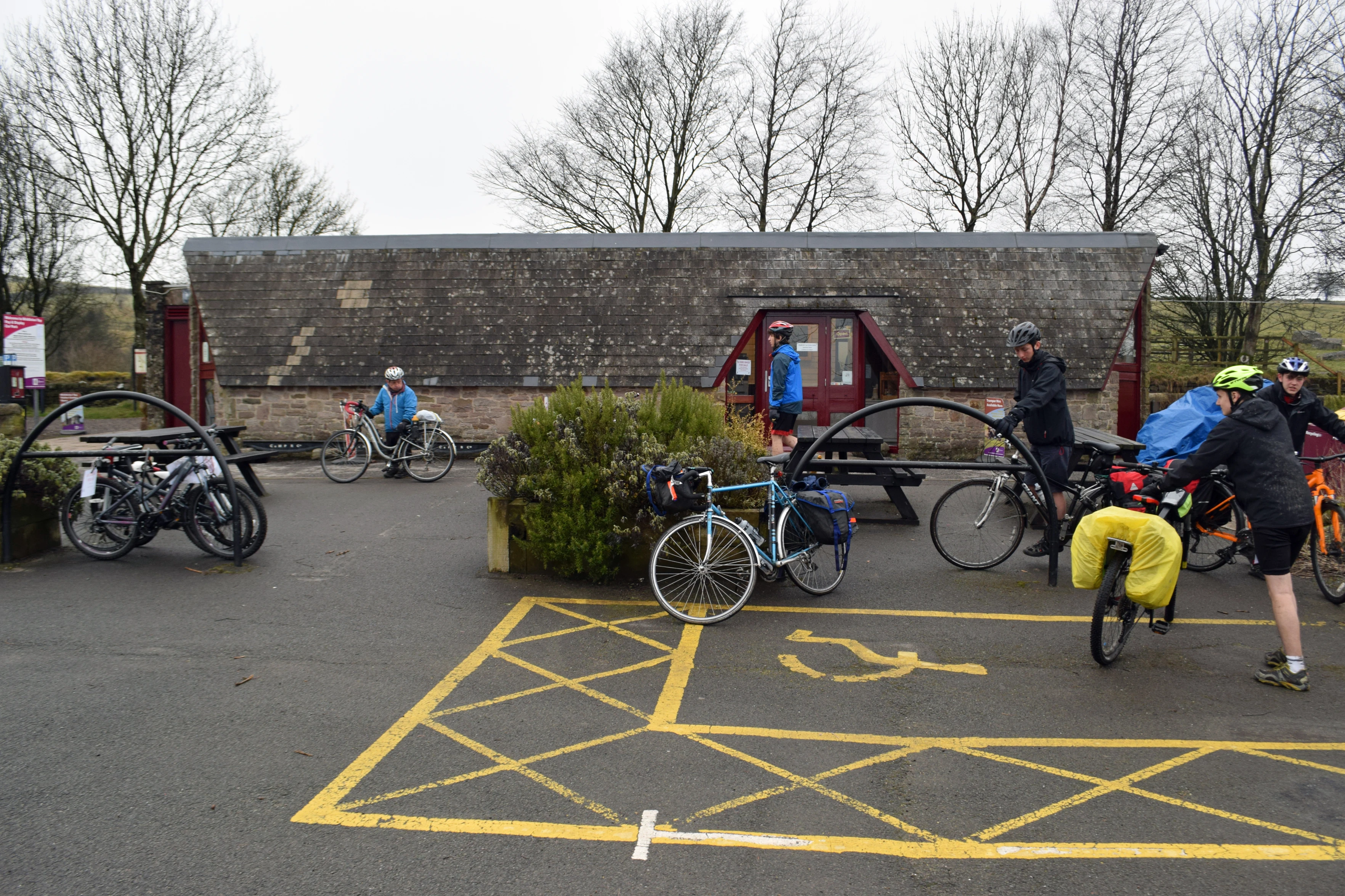 Finally leaving Middleton Top café after warming up and drying out