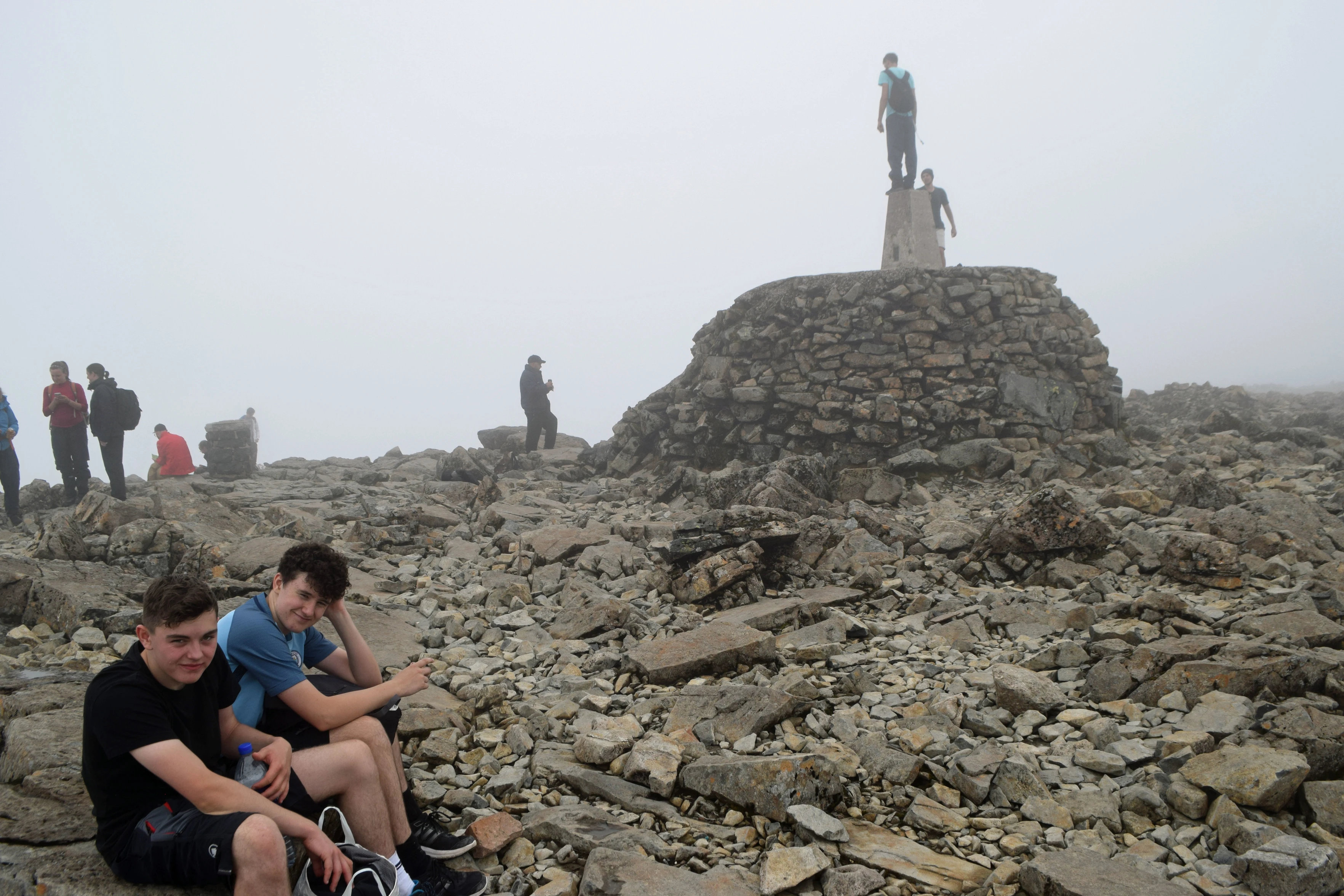 Waiting our turn to stand on the trig point atop the Ben Nevis cairn.