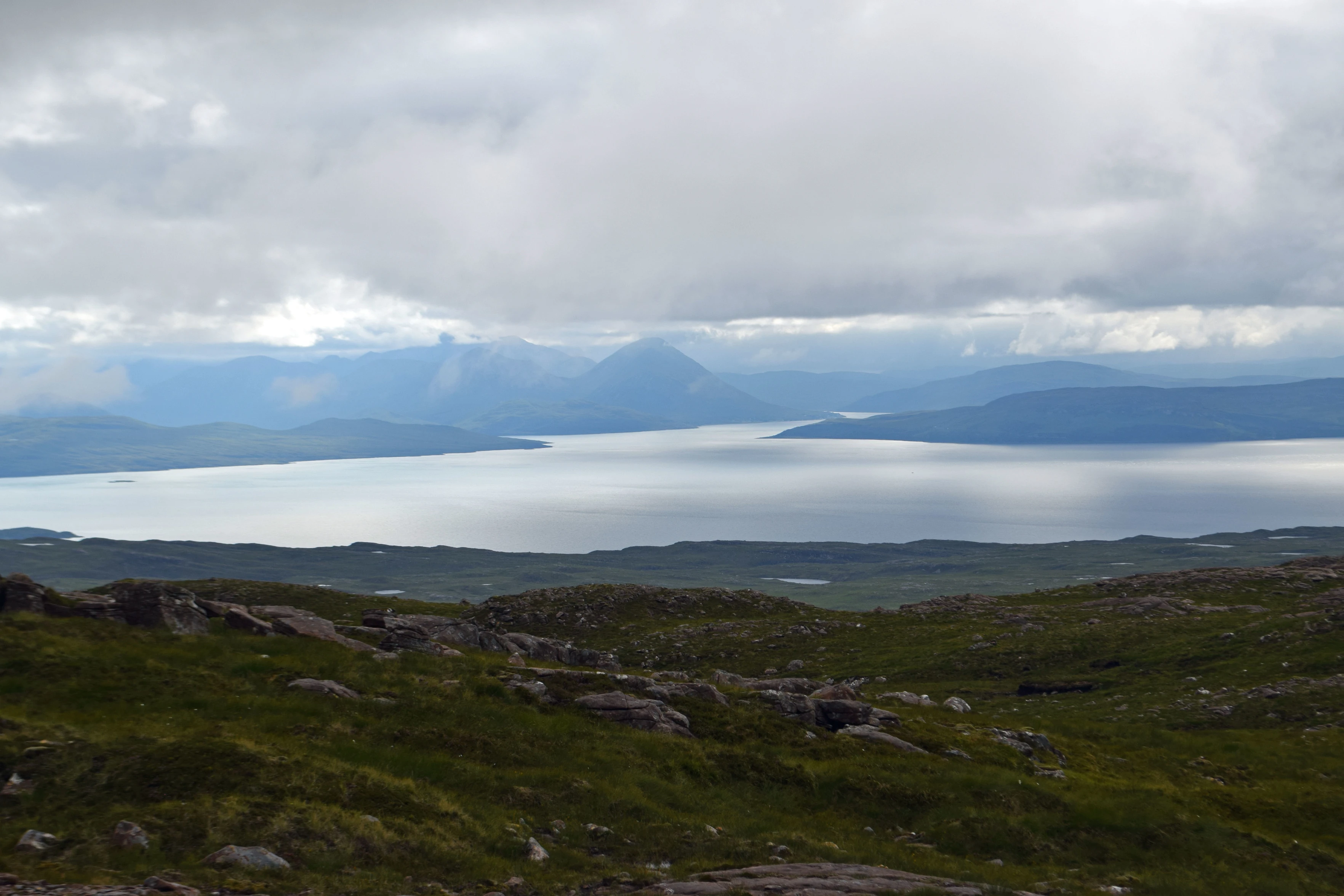 Scalpay and Raasay, with Skye beyond, on the Bealach na Ba descent